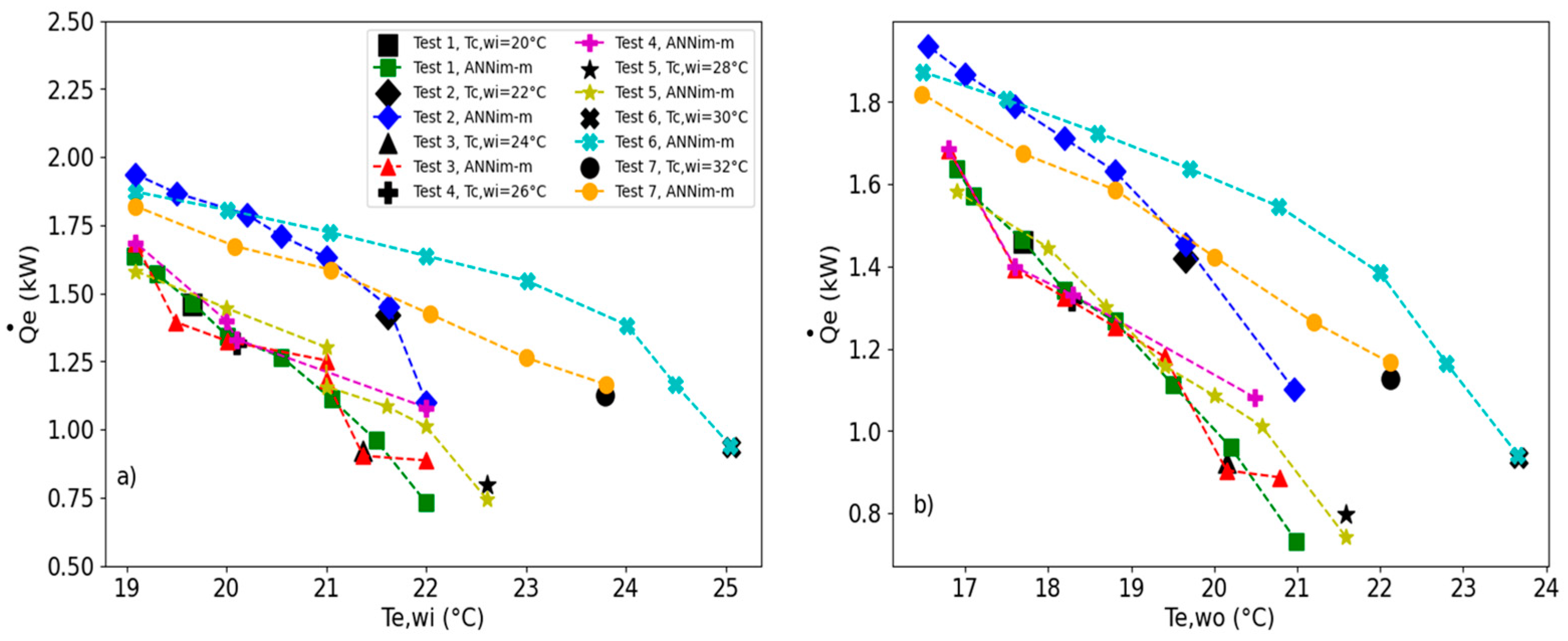 Figure 9a shows how, for test no. 6, the experimental cooling load obtained at