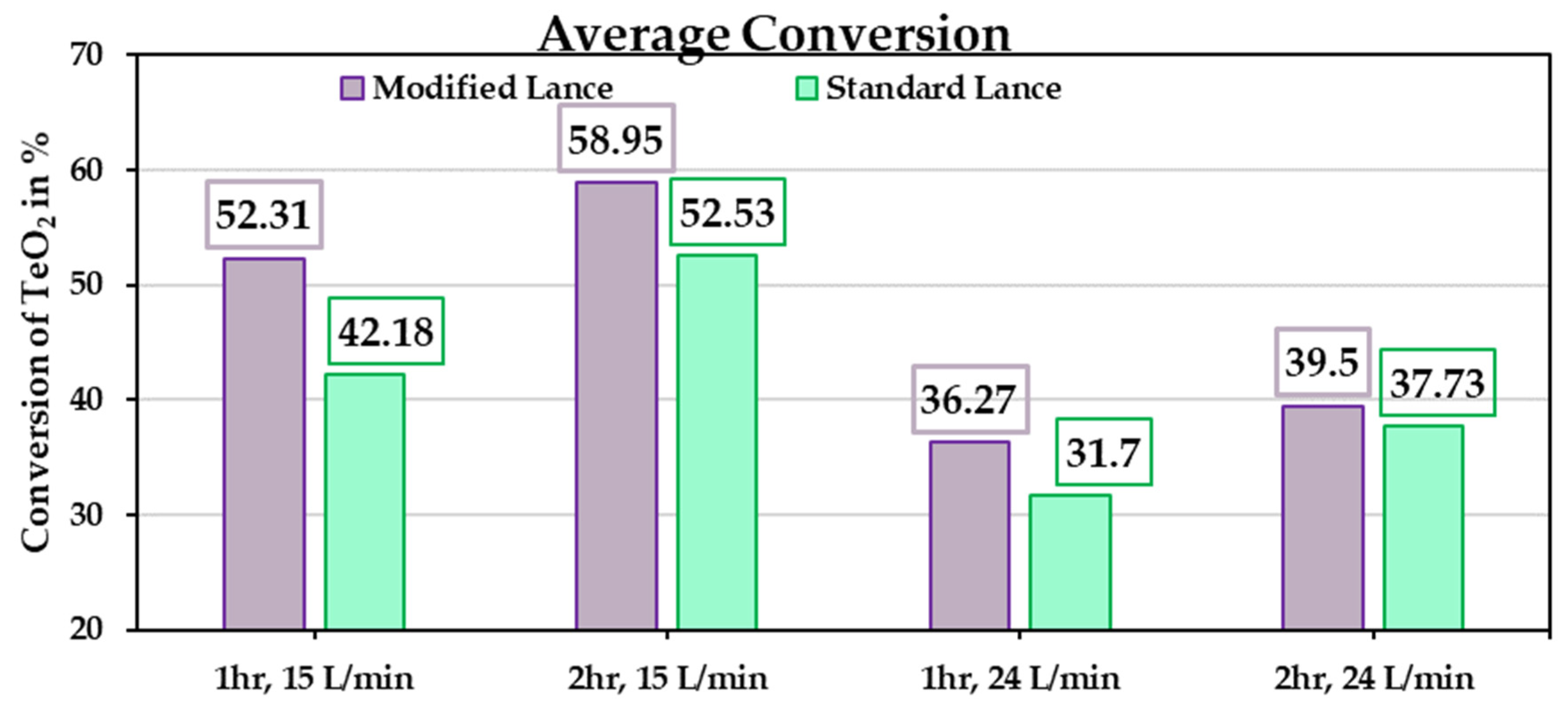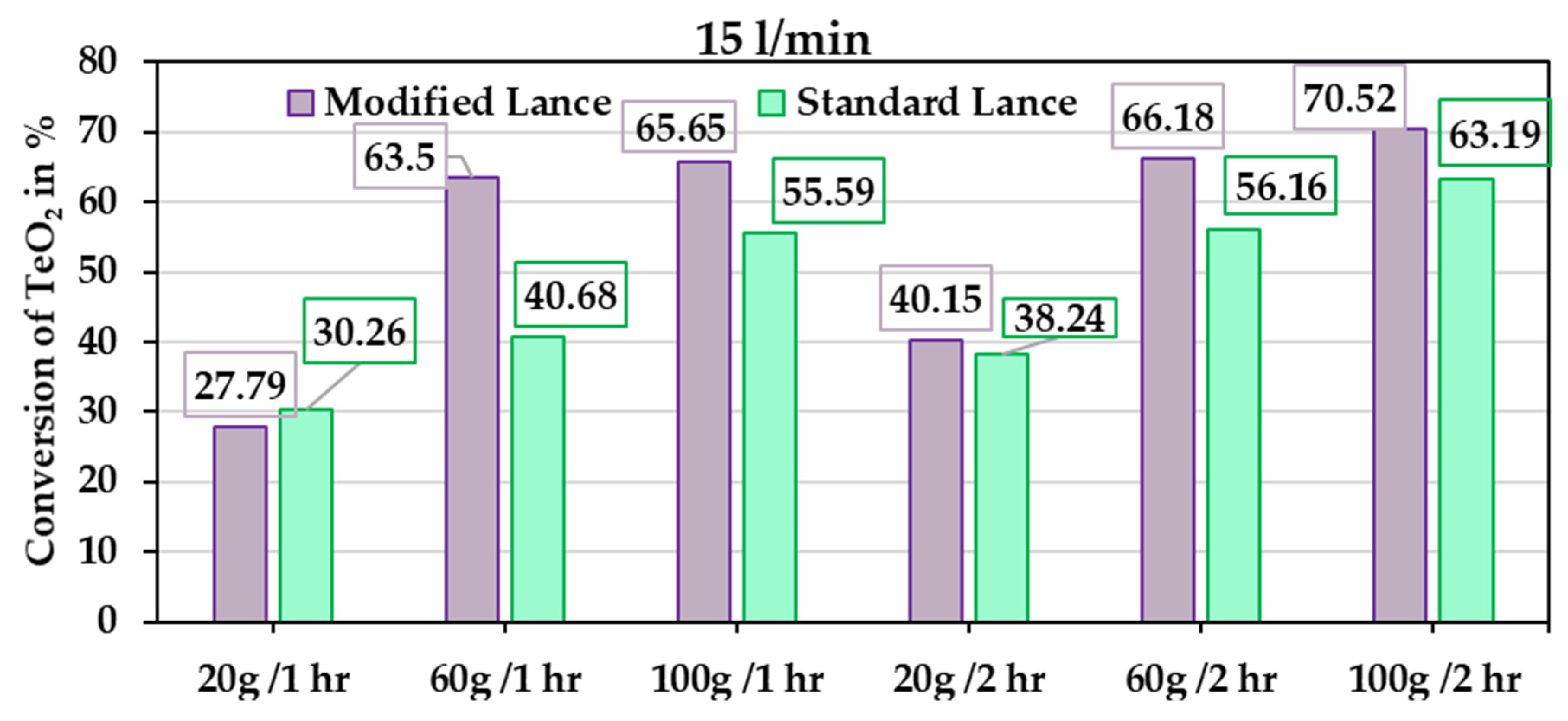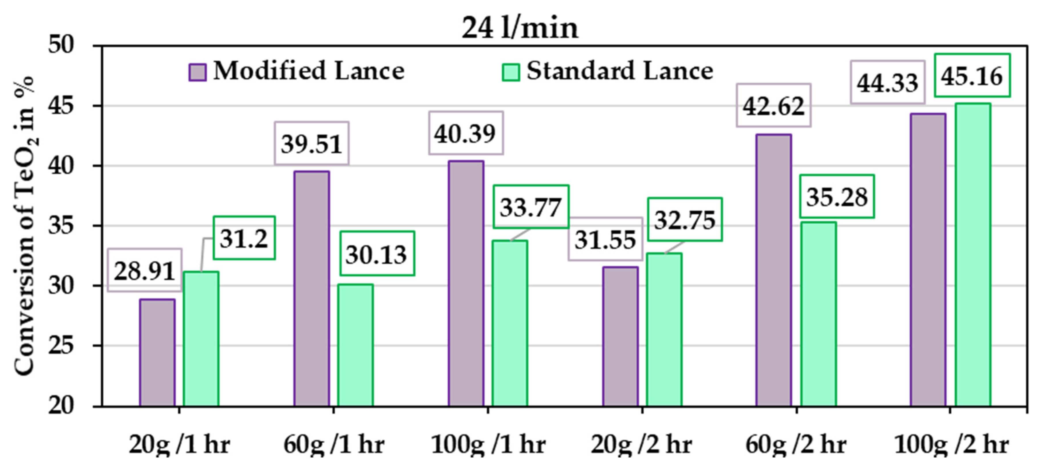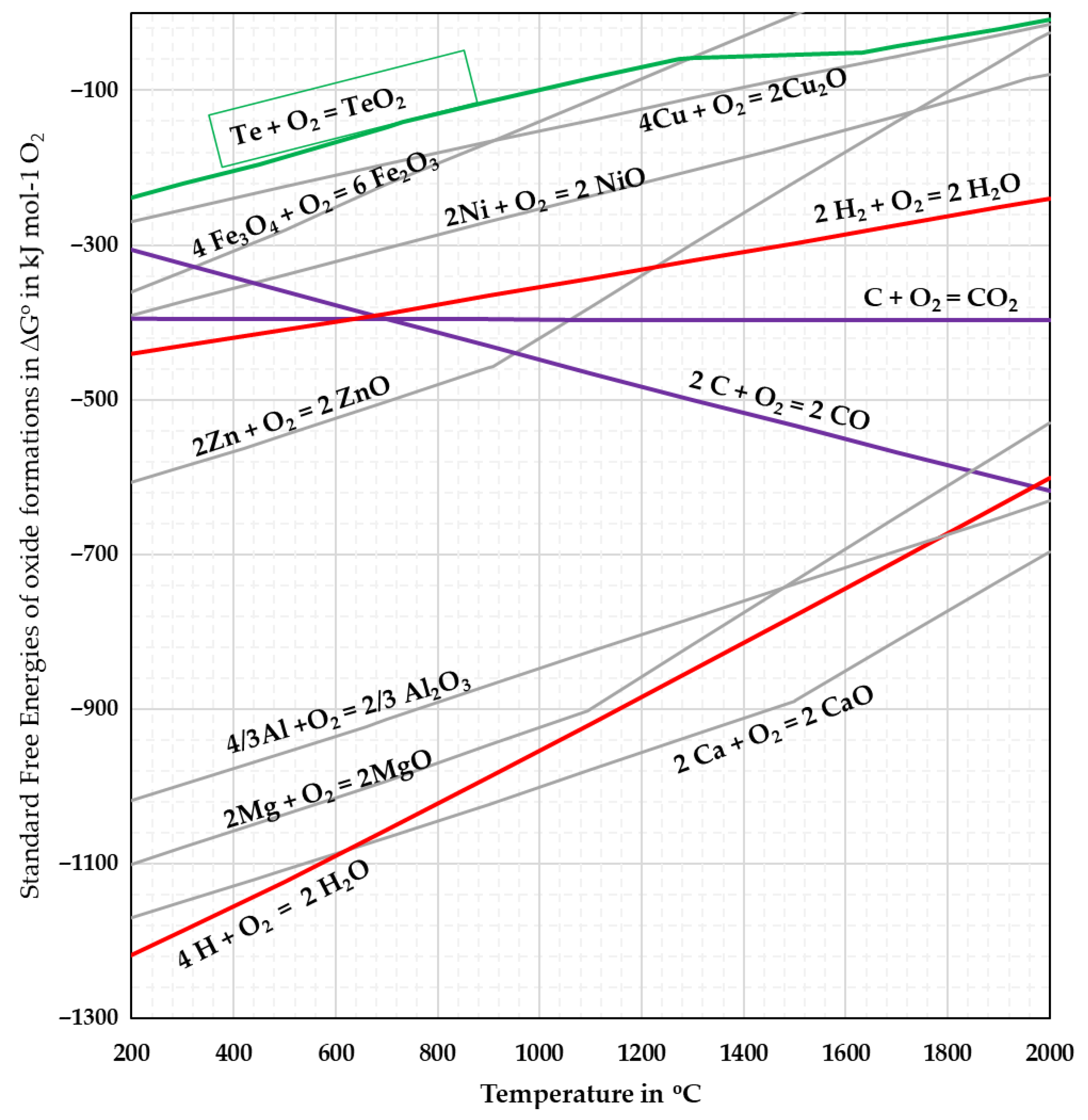 - Chung, H.; Friedrich, S.; Qu, M.; Friedrich, B. Hydrogen Reduction of Tellurium Oxide in a Rotary Kiln, Initial Approaches for a Sustainable Process. Crystals 2025, 15, 478. [Google Scholar] [CrossRef]