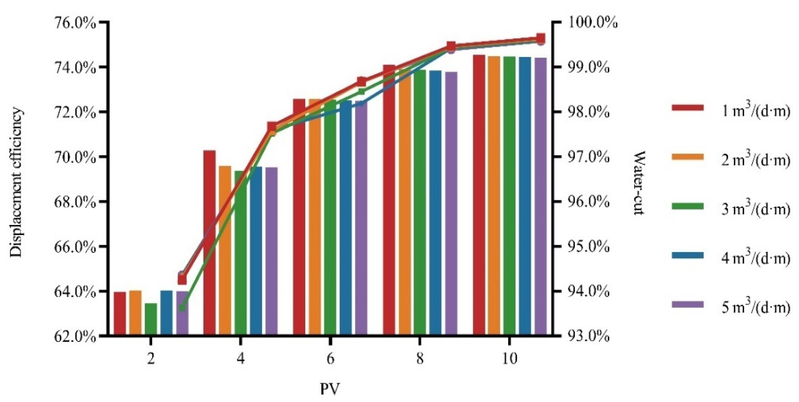 | polymer–water synergistic flooding | 69.02 | 74.31 | 74.76 | 73.12 | 73.24 |