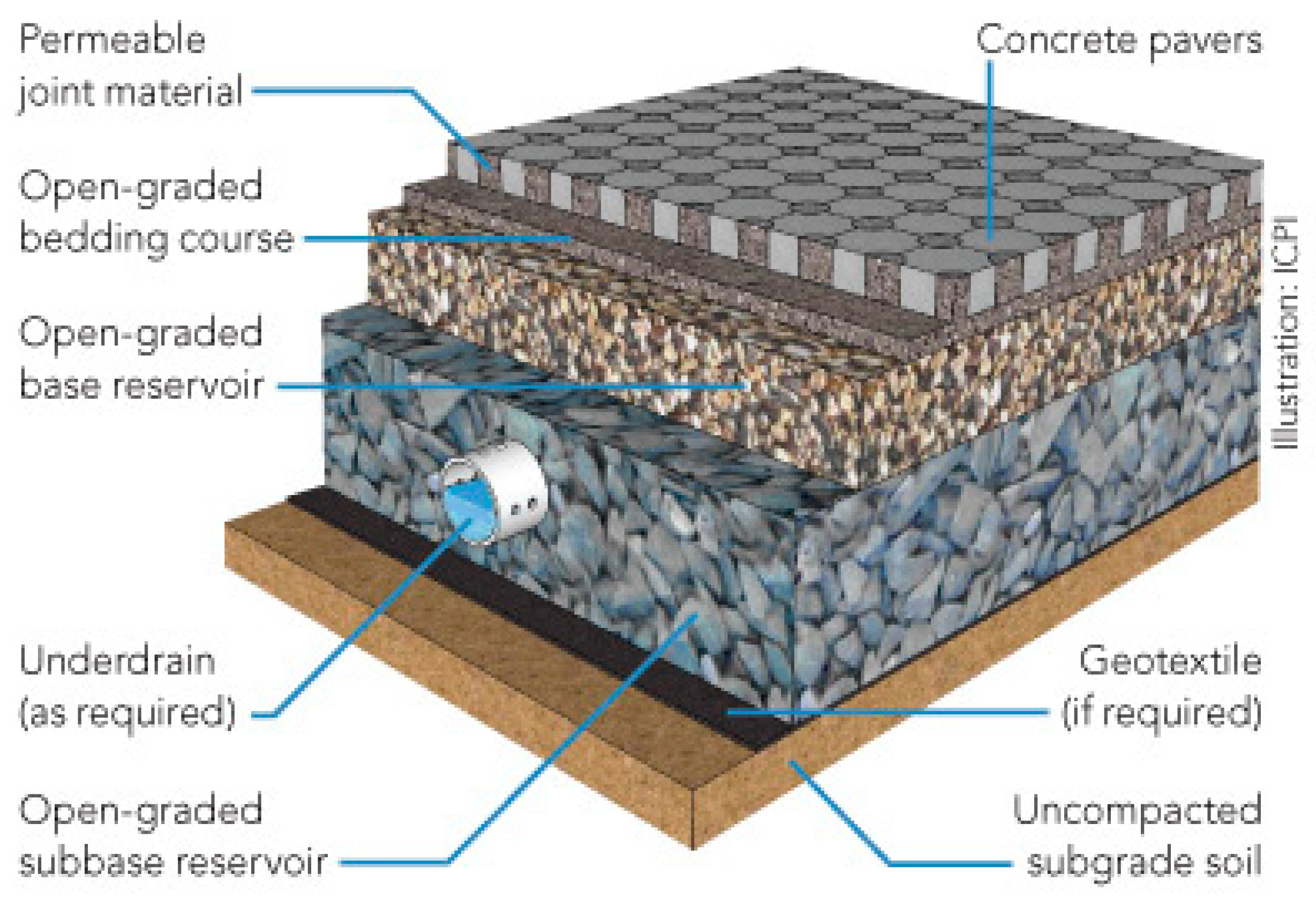 - Patrick Steele June. Permeable Pavers. Farley Pavers. 2018. Available online: https://farleypavers.com/permeable-paver-installation/ (accessed on 22 May 2018).