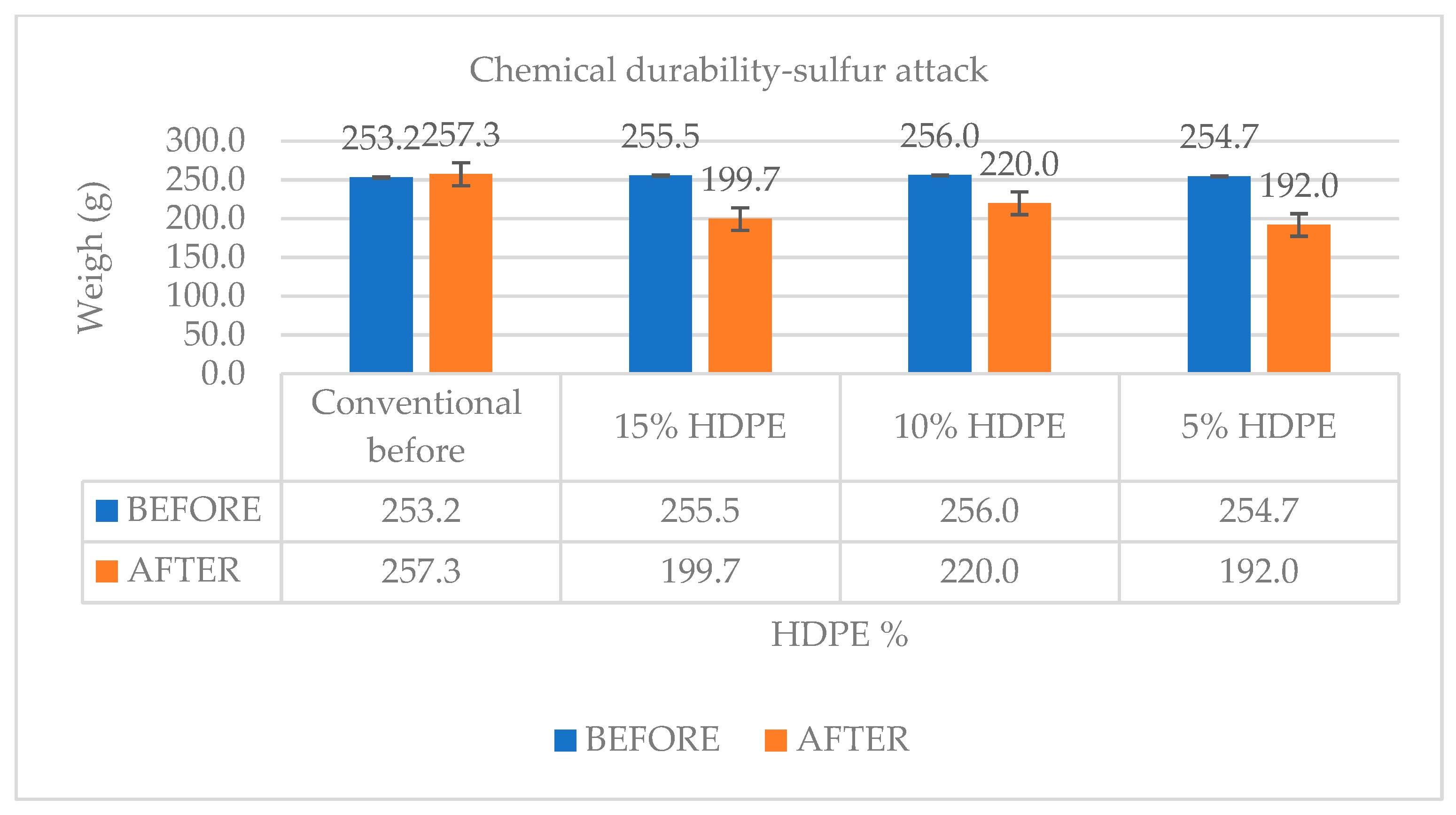 - The chemical durability test is for testing one of the limitations of HDPE. The concrete cube is divided into six pieces merged into sulfur for 28 days.