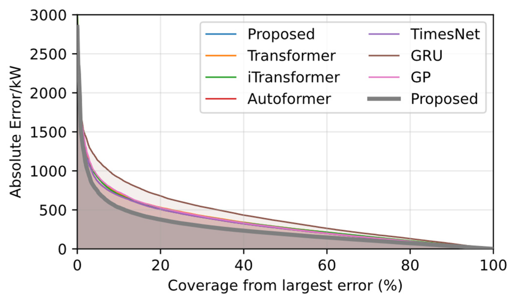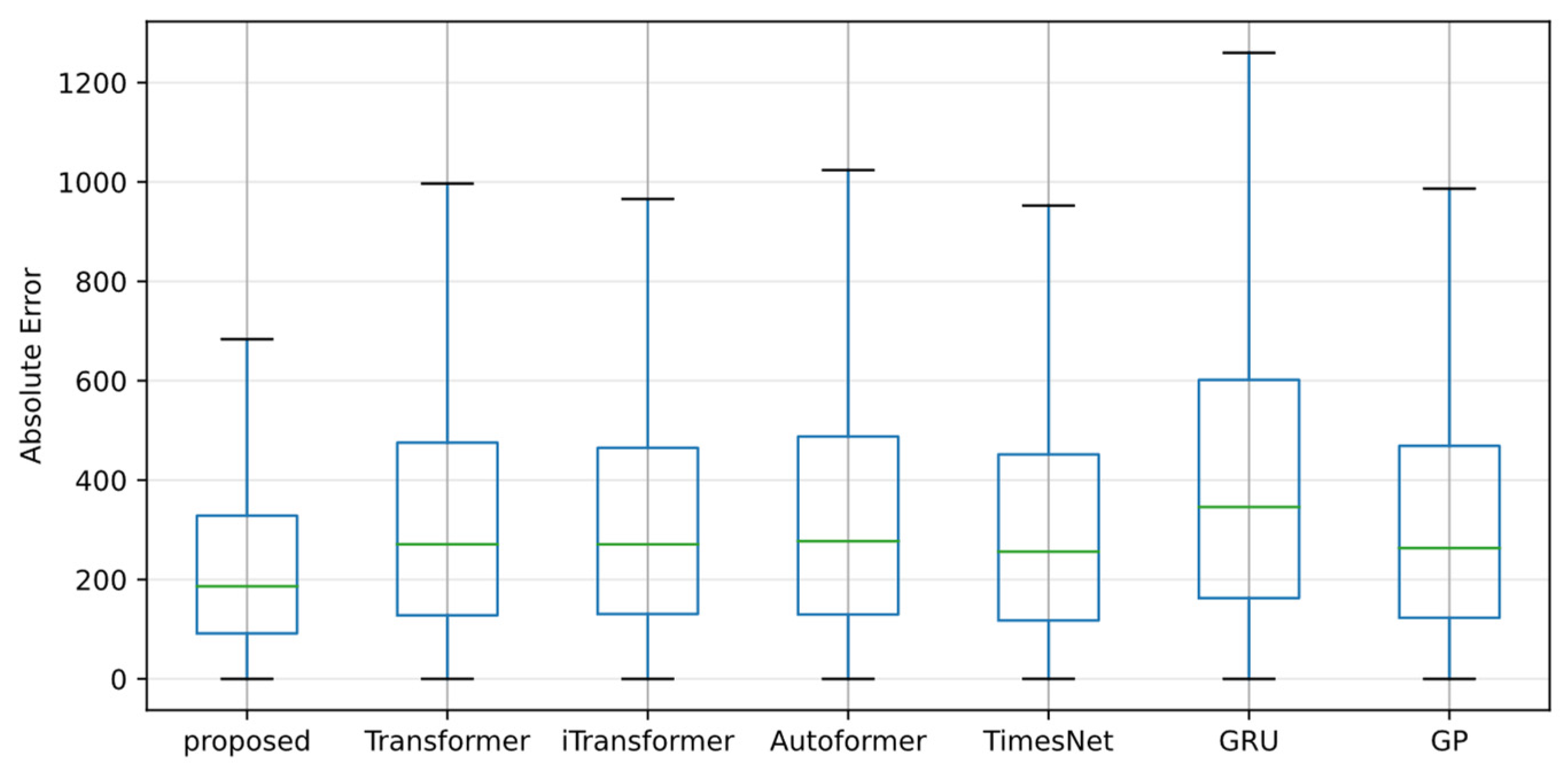 - The proposed Transformer-expert scheme achieves higher accuracy, reducing MAPE by 1.49 percentage points versus GRU. Replacing GRU with Transformer experts yields a 1.49 percentage-point reduction in MAPE. Against mainstream baselines, the proposed method lowers MAPE by 1.08–2.62 percentage points and exhibits smaller maximum errors.