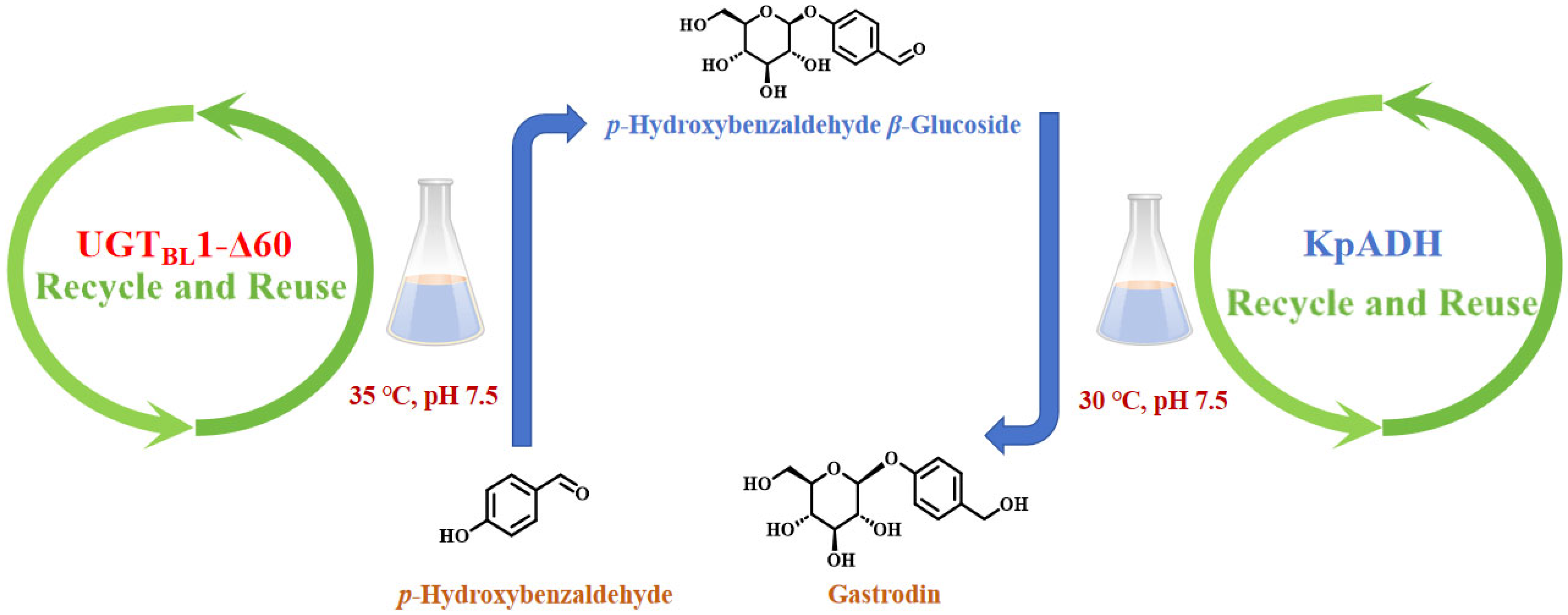 Chicago/Turabian StyleFan, Bao, Jiale Xiong, Cuiluan Ma, and Yu-Cai He. 2026. "Bioproduction of Gastrodin from Lignin-Based p-Hydroxybenzaldehyde Through the Biocatalysis by Coupling Glycosyltransferase UGTBL1-Δ60 and Carbonyl Reductase KPADH" Processes 14, no. 1: 55. https://doi.org/10.3390/pr14010055