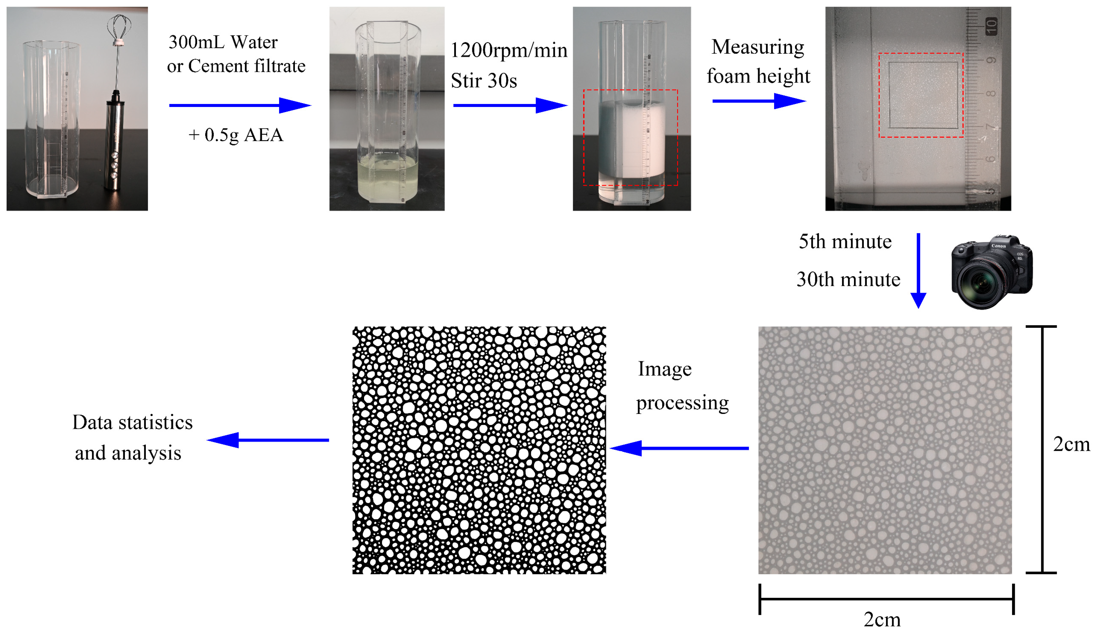 2.2.1. Measurement of Foam Height of AEA Solutions and Analysis of Foam Morphology Changes