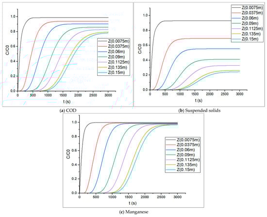 3.3.3. Breakthrough Curves of the Textile Effluent