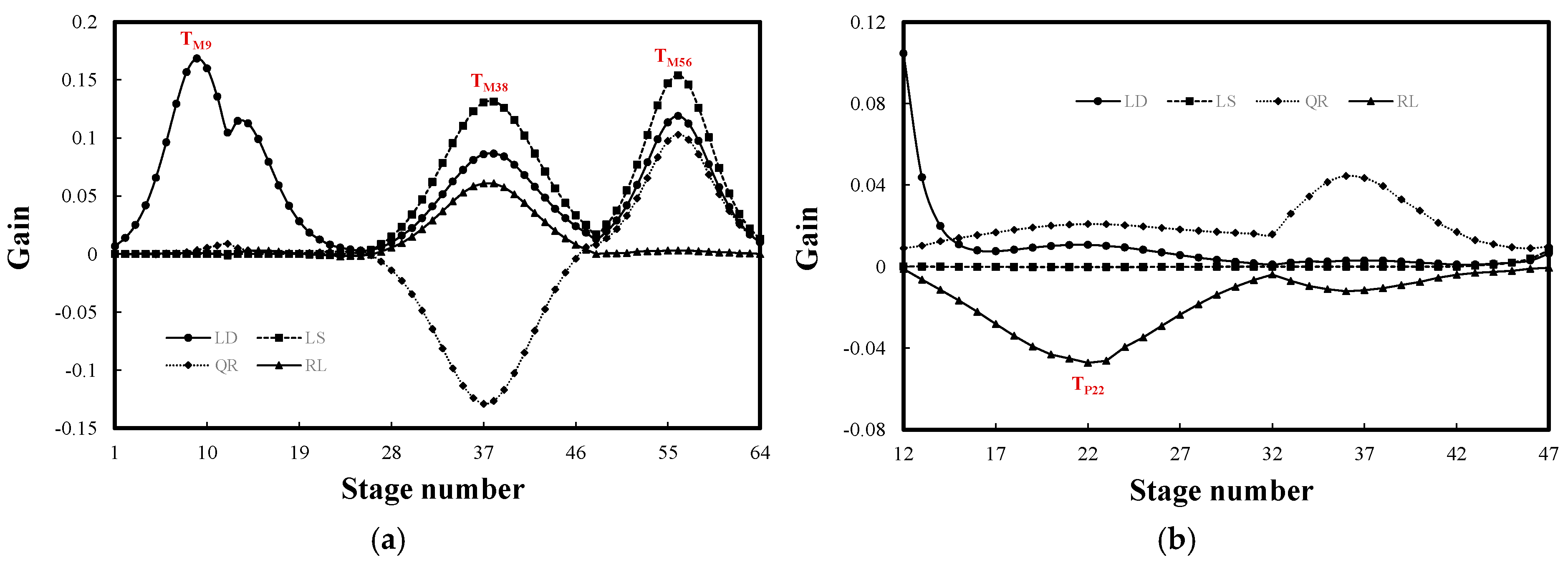 . To clarify the correlation between each manipulated variable and the stage temperatures, a sensitivity analysis was conducted. Each of these four manipulated variables was varied by ±0.1%, respectively, and the analysis results are shown in