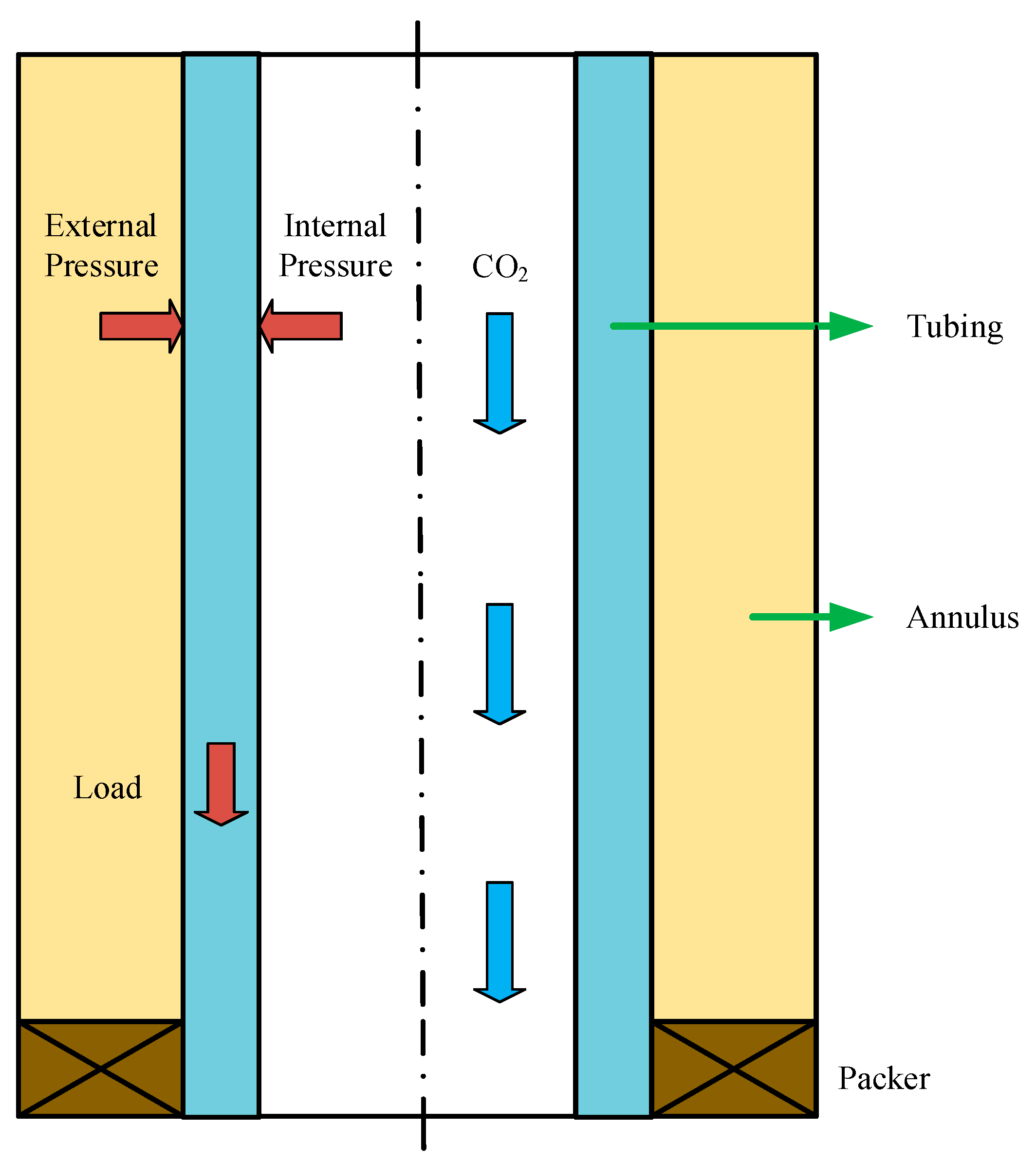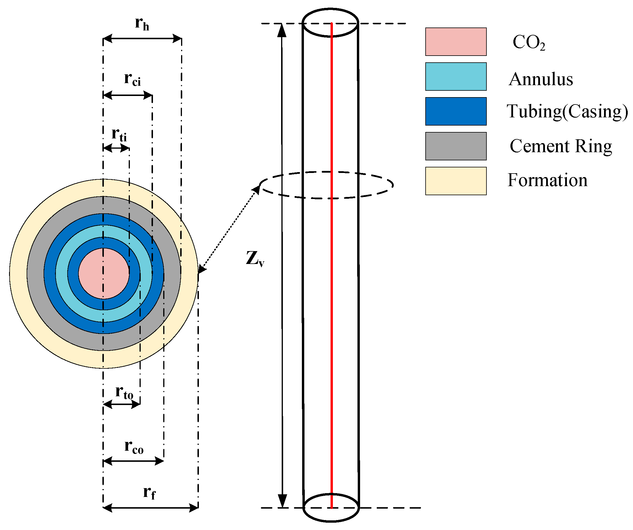 - CO2 flow within the tubing is treated as one-dimensional axial flow along the wellbore axis, accounting for temperature and pressure variations in the axial direction;