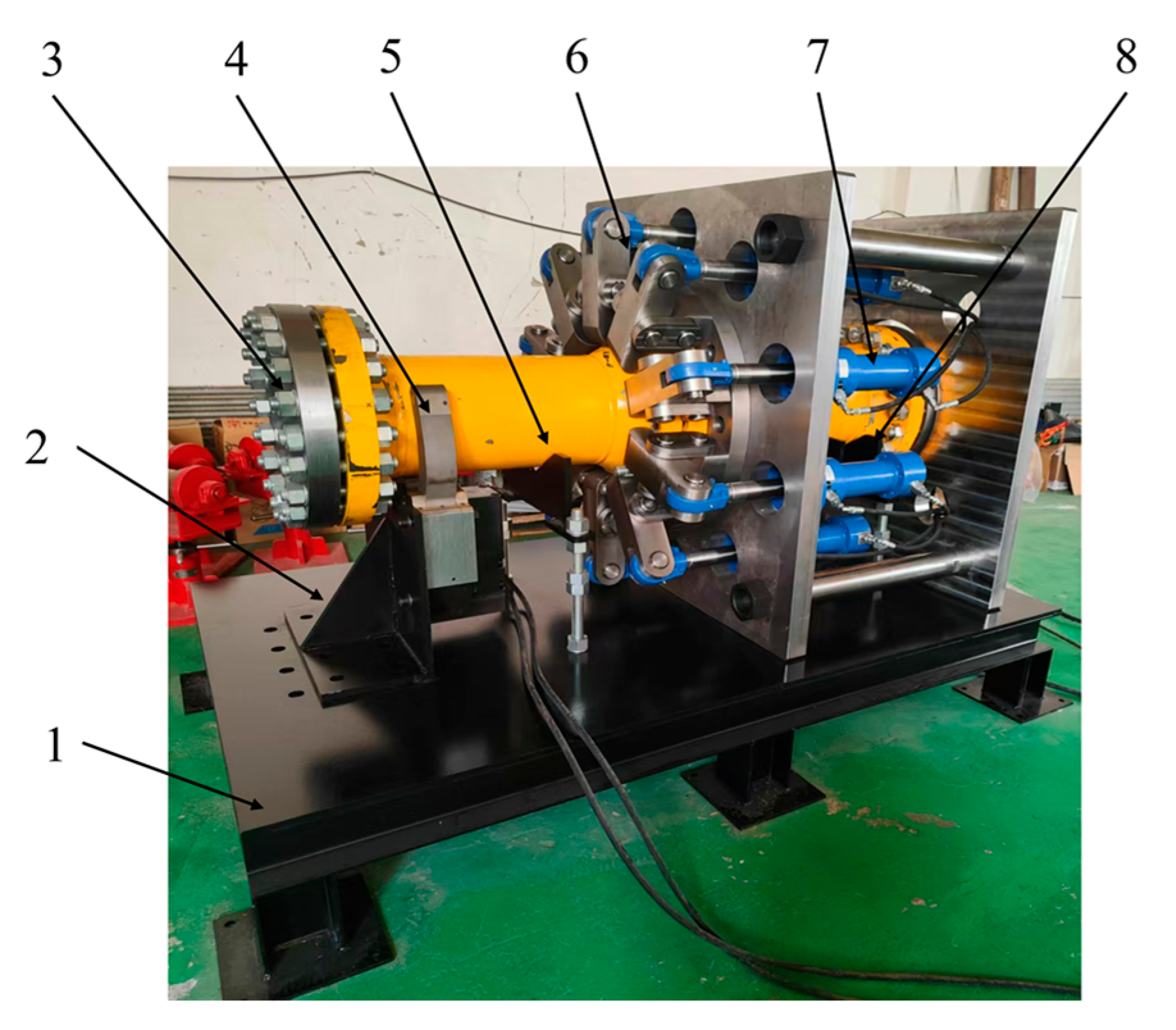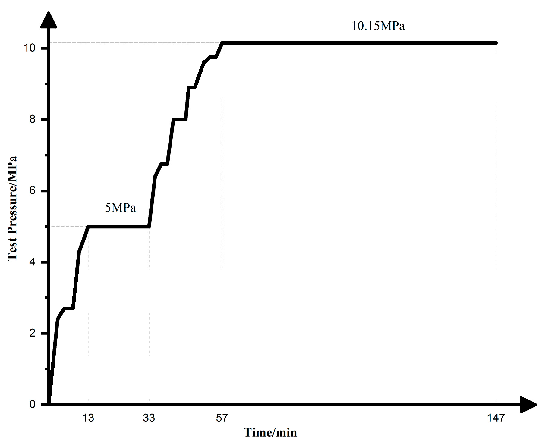 - Experimental sealing tests confirm that the hydraulic clamping mechanism delivers stable and reliable sealing performance under a gas pressure of 10 MPa. These results validate that the hydraulic clamping force can effectively substitute for traditional bolt preload.