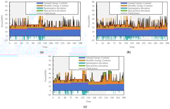 represents the divided parts of monthly contracted electricity energy into daily and hourly electricity energy, is the collection of all time periods within month m. The monthly contracted electricity energy can be flexibly decomposed based on daily conditions; represents the minimum proportion of annual contracted electricity energy to medium- and long-term contracted electricity energy.