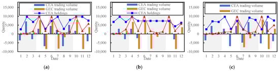 and represent the total CEAs amount and pre-allocated CEAs amount obtained in the primary CET market, respectively; represents the trading volume of CEAs in the primary CET market; and represent the proportion of pre-allocated CEAs based on the power generation of the carbon capture unit in the previous year and the benchmark value of carbon emission intensity, respectively, set at 0.7 and 0.8049 [25]; represents the total power generation of the carbon capture unit in the previous year. α represents the upper limit of the trading proportion in the primary CET market.