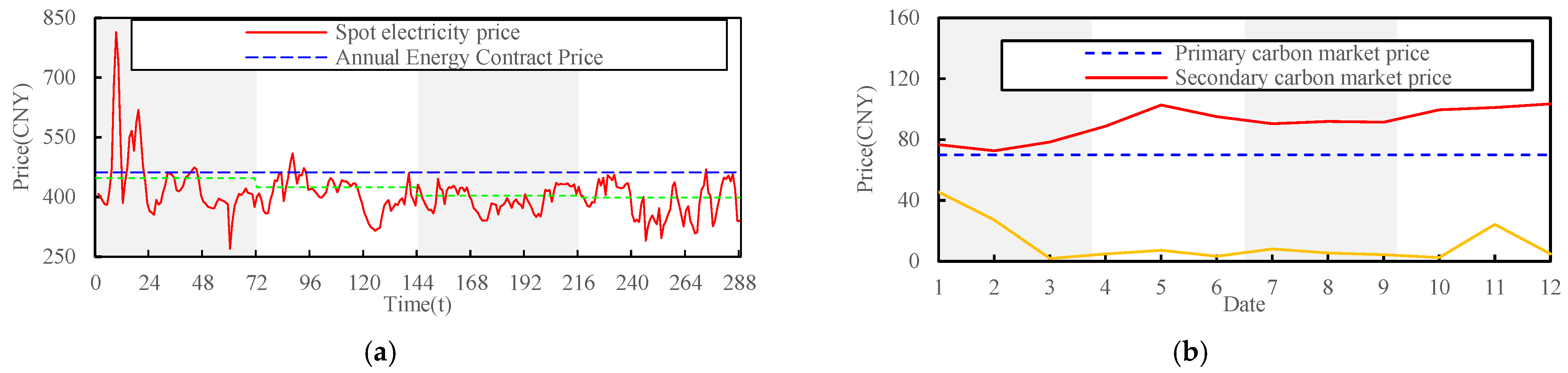 - Liu, R.; Chen, K.; Sun, G.; Lin, S.; Jiang, C. Bidding Strategy for the Virtual Power Plant Based on Cooperative Game Participating in the Electricity-Carbon Joint Market. Int. J. Electr. Power Energy Syst. 2024, 163, 110325. [Google Scholar] [CrossRef]