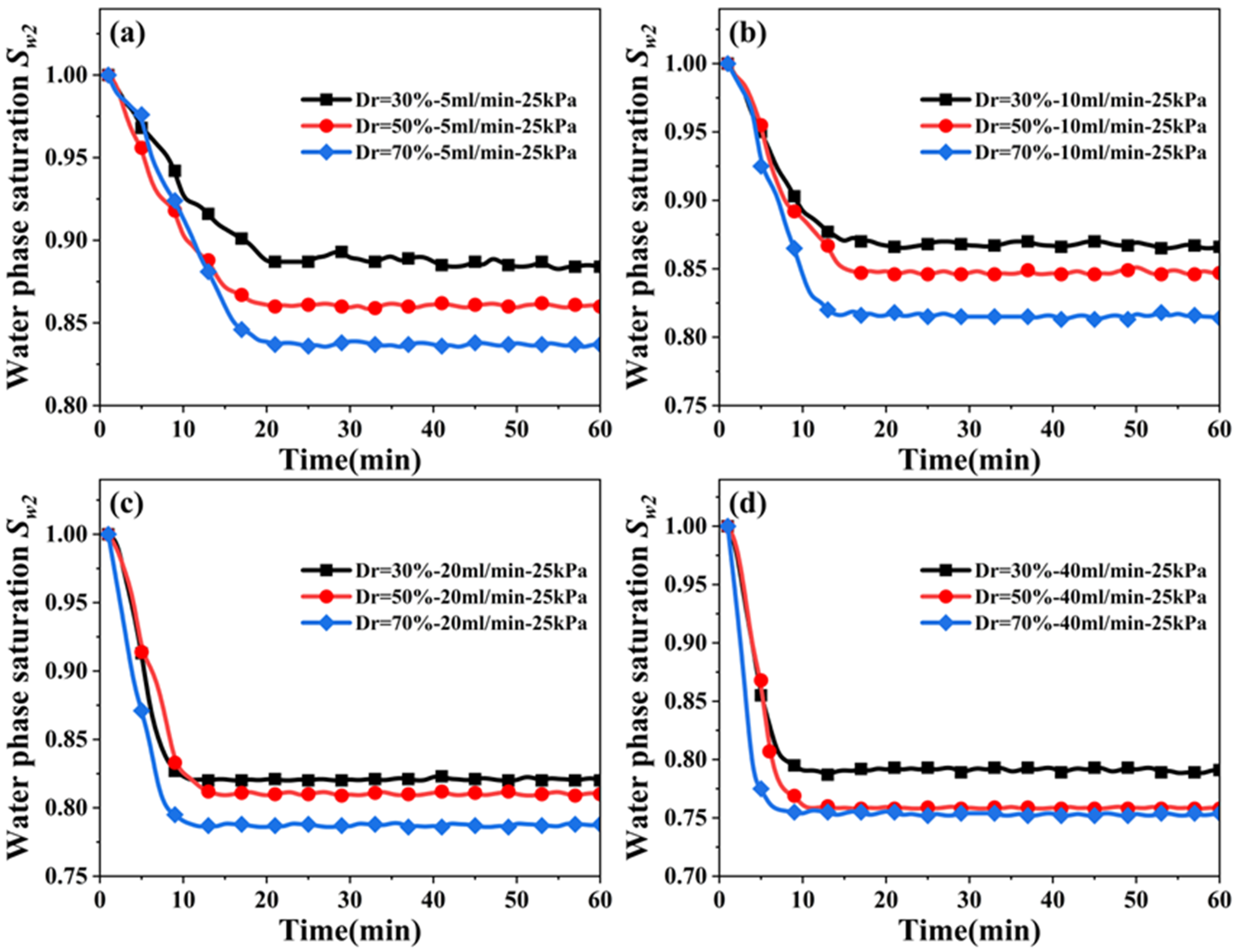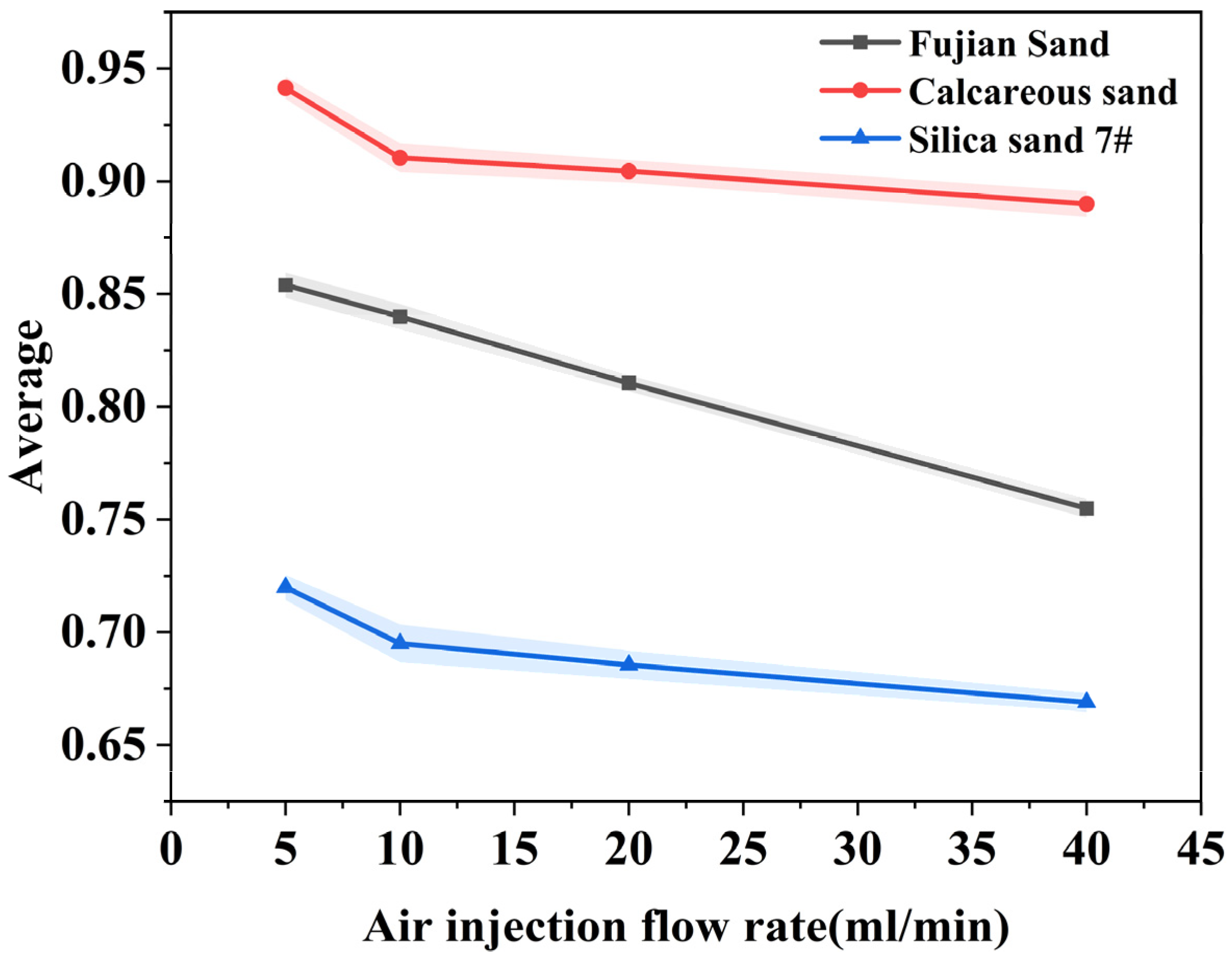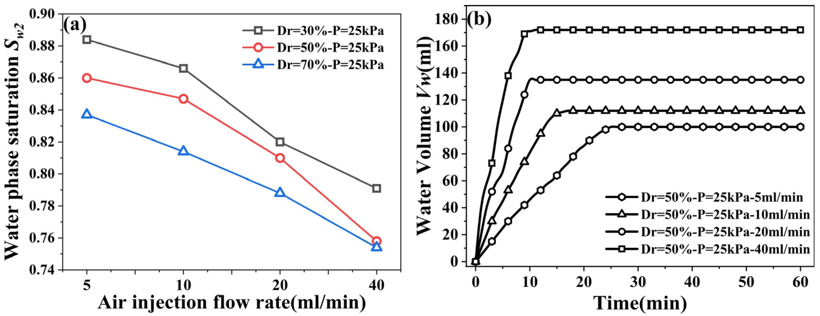 3.1. Effect of Air Injection Flow Rate on Degree of Saturation