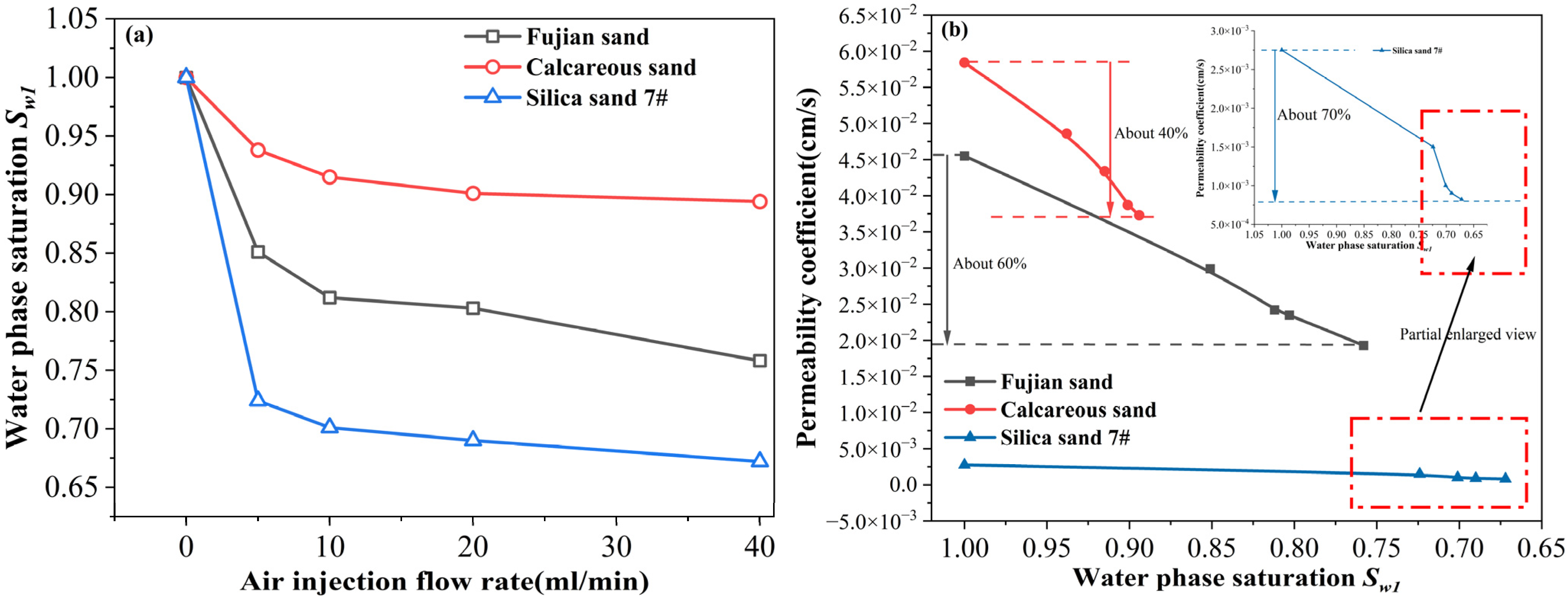Experimental Investigation on Degree of Desaturation and Permeability Coefficient for Air-Injection-Desaturated Sandy Soil