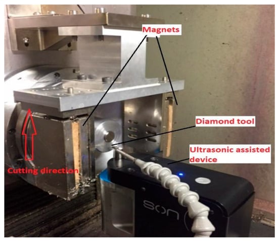 Experimental setup of ultrasonic–magnetic field assisted SPDT [102].