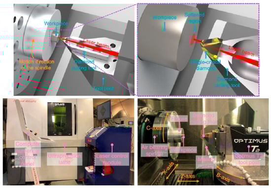 Schematic and experimental setup of laser-assisted slow-tool-servo SPDT platform [106].