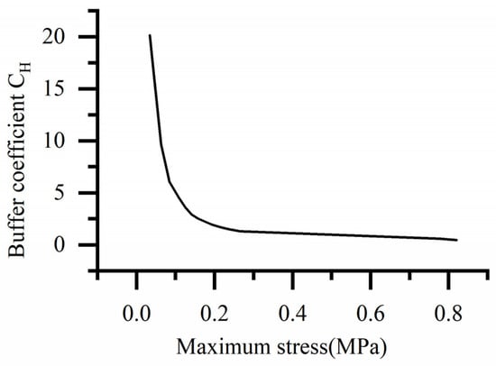 Based on the constitutive behavior of the HL-1029 silicone gel, the stress–buffer coefficient curve is shown in Figure 4.