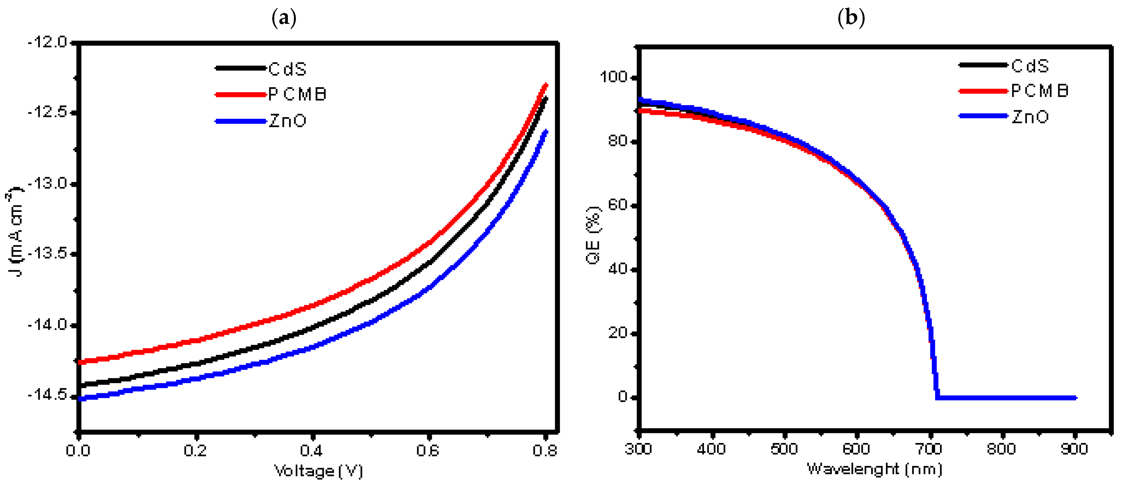 3.6. Effect of Different Work Function on Performance Parameters with Various ETLs