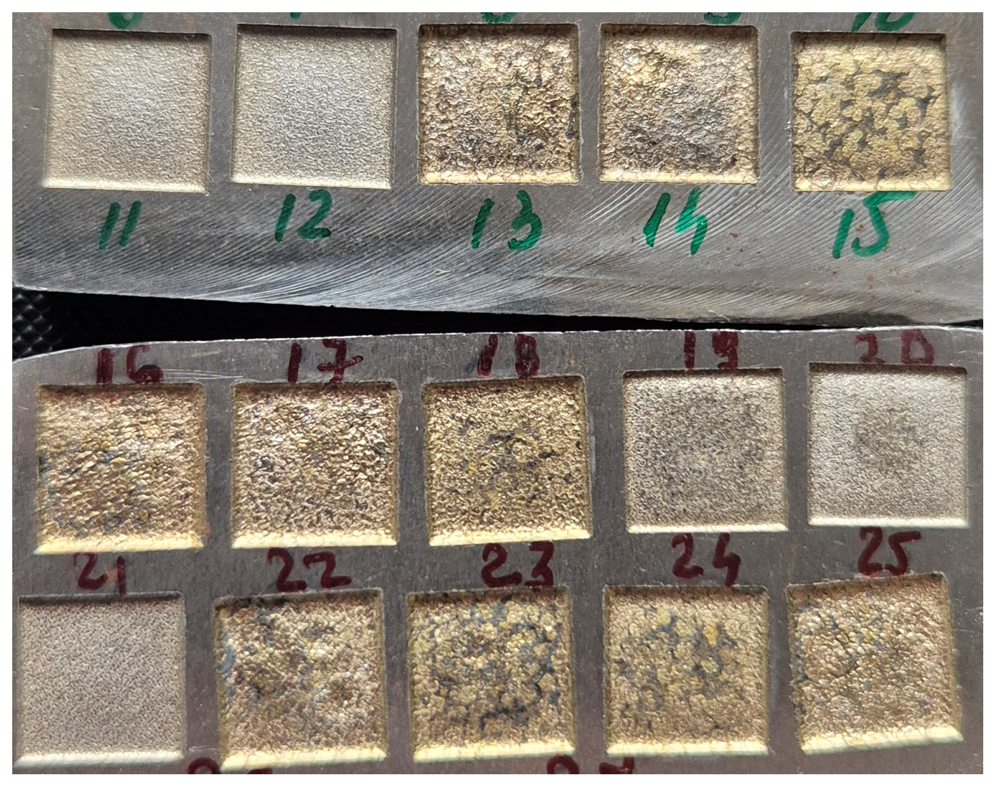 - Messaoudi, I.; Ben Fraj, B.; Hentati, H.; Trabelsi, M.; Kamoun, T.; Meslameni, W.; Haddar, M. Phase Transformations and Electrothermal Effects in EDM-Machined Steel: Surface Topography, Crater Morphology, and Debris Evolution. Rom. J. Phys. 2025, 70, 912. [Google Scholar] [CrossRef]