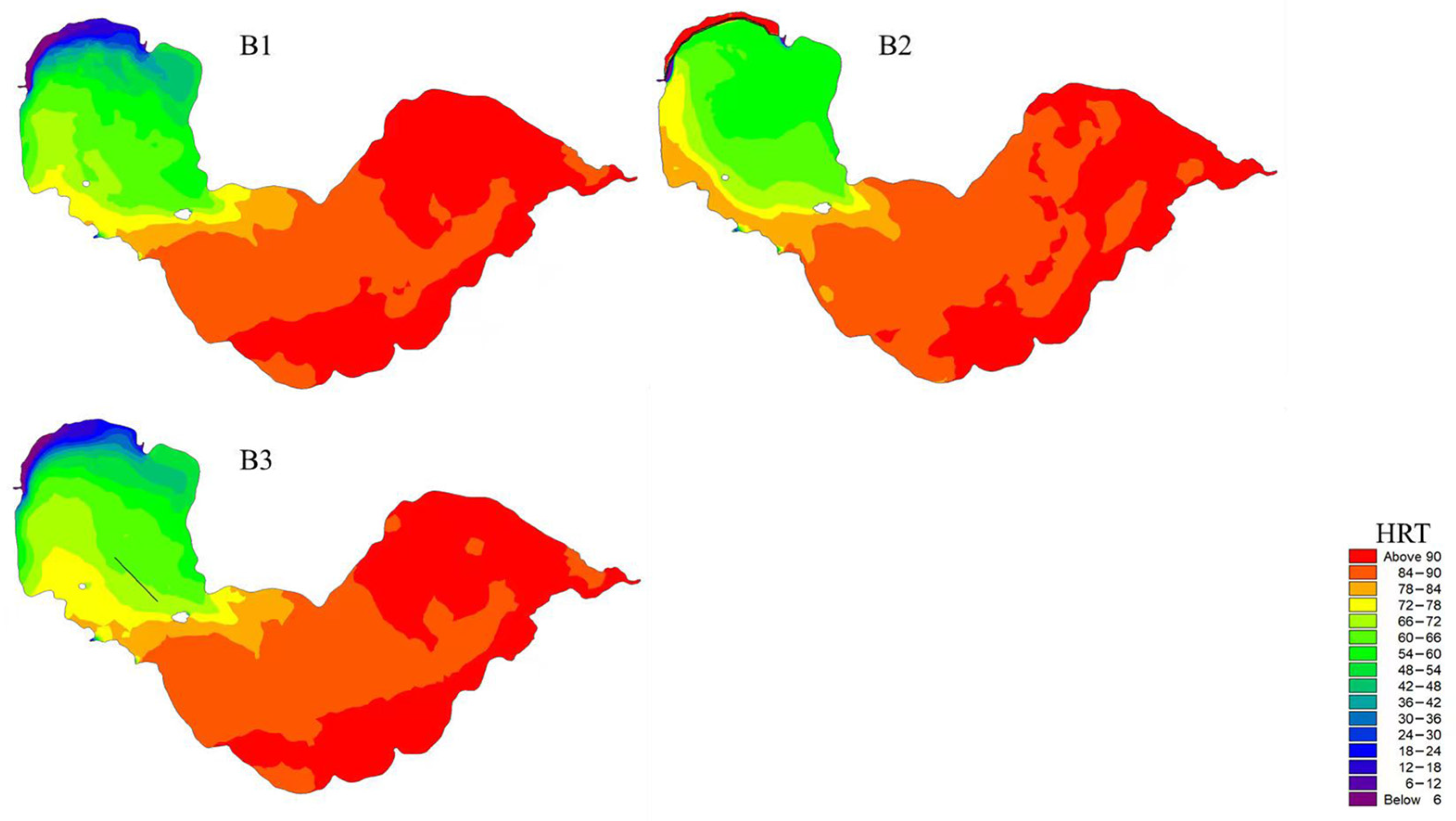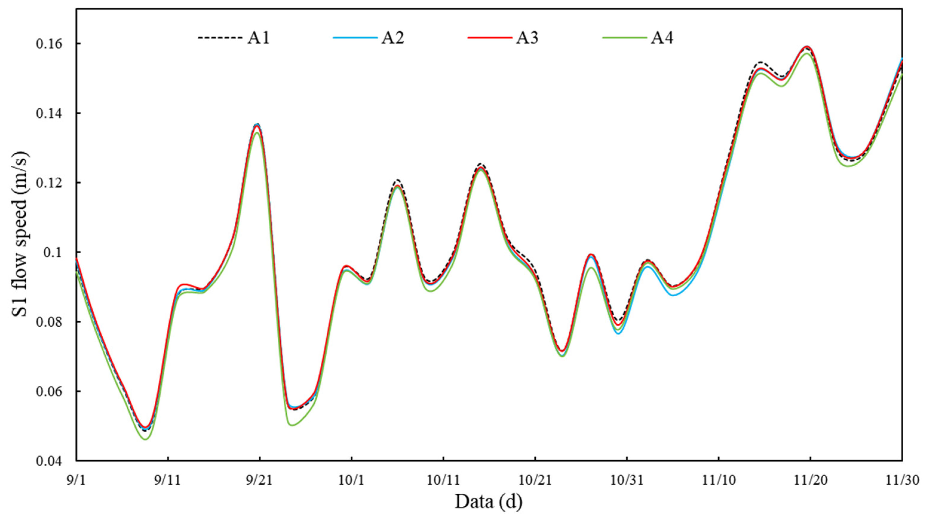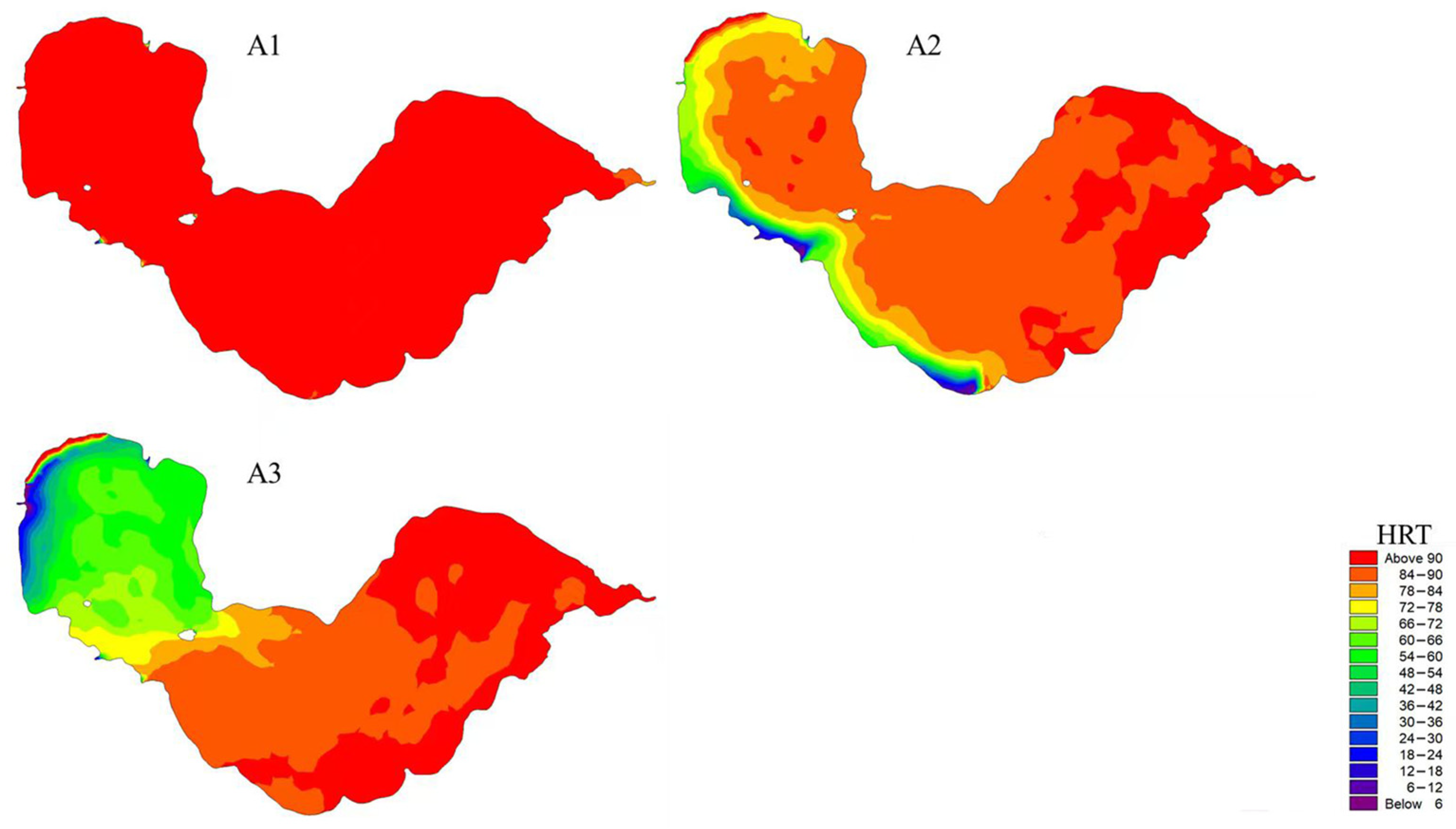 3.3.2. Changes in Hydraulic Retention Time and Flow Velocity in the West Lake
