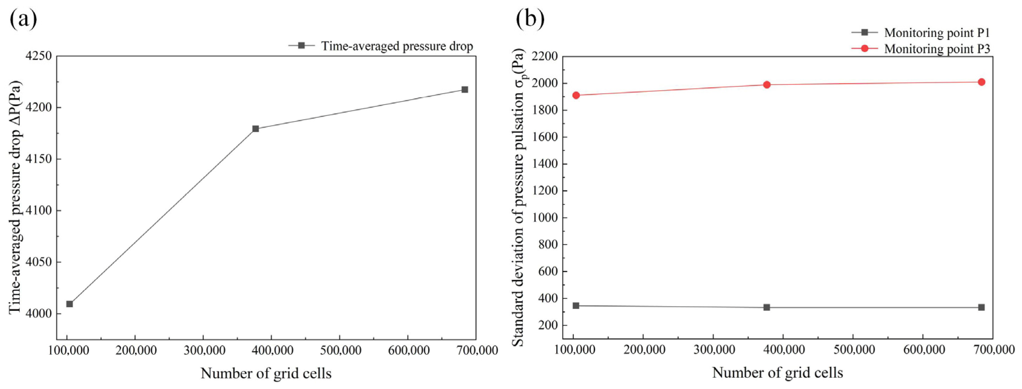 | Middle grid | 376,949 | Local mesh refinement at interfaces and other critical regions |