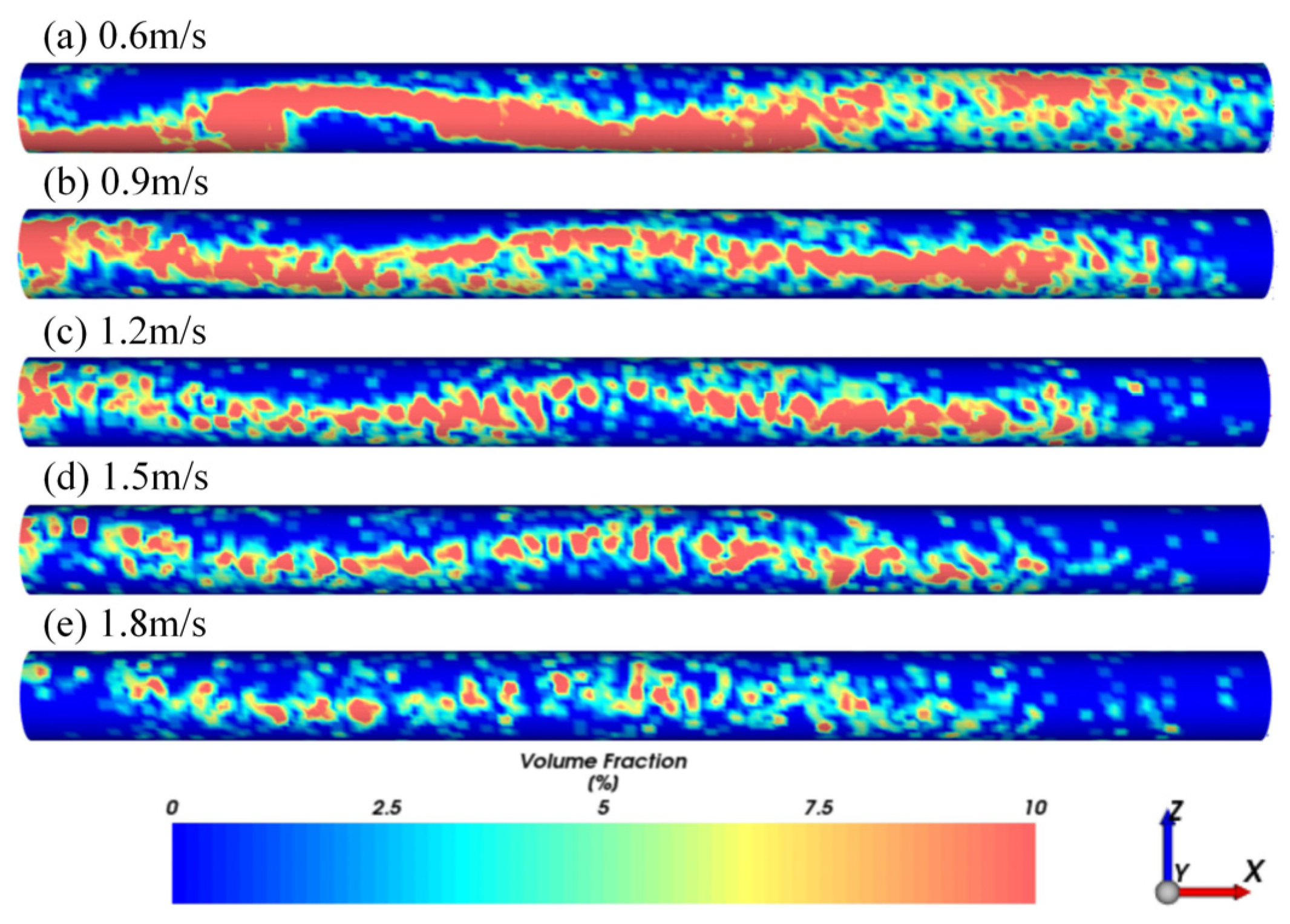 - Validation of the Model: Due to the lack of publicly available experimental data on cutting transport in flexible drill pipes, we were unable to validate the simulation results with real-case data. Future experimental studies could address this gap.