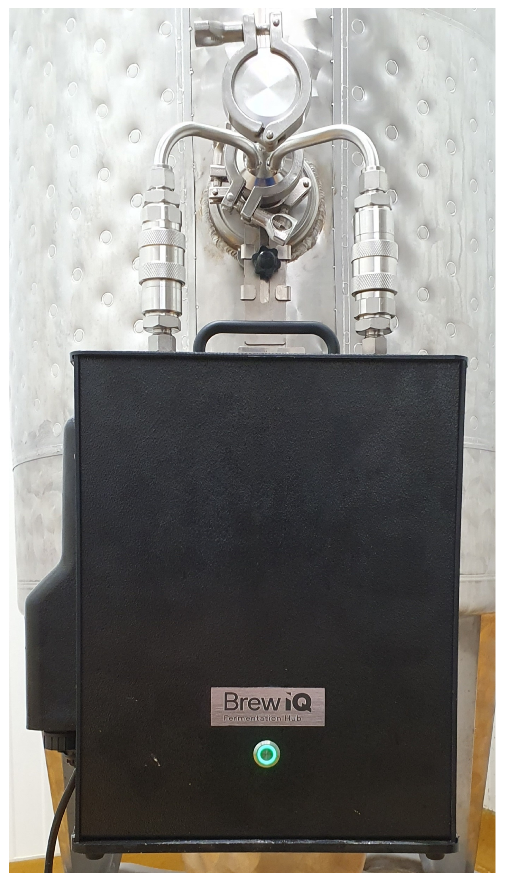 All inline measurements within the dataset were recorded using the Sennos (Durham, NC, USA) BrewIQ multi-sensor fermentation monitor, shown in