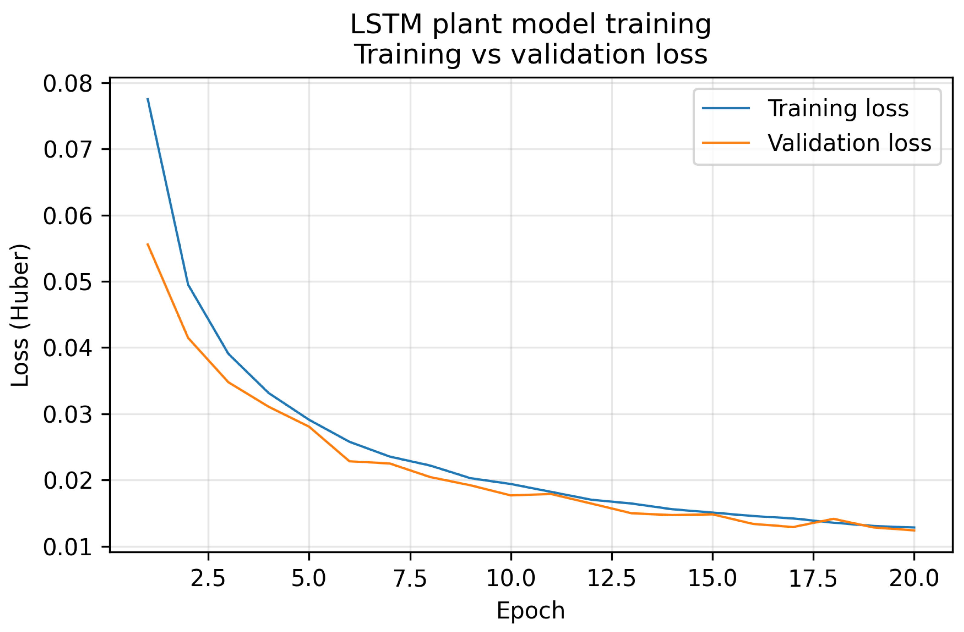 , mini-batch size of 32, and 20 epochs. Gradients are clipped to a global norm of 1.0 to improve stability, and a dropout rate of 0.1 is applied between the two LSTM layers. These hyperparameters were chosen to balance model capacity, training stability, and computational cost, and are consistent with standard practice for recurrent neural networks in process modelling [