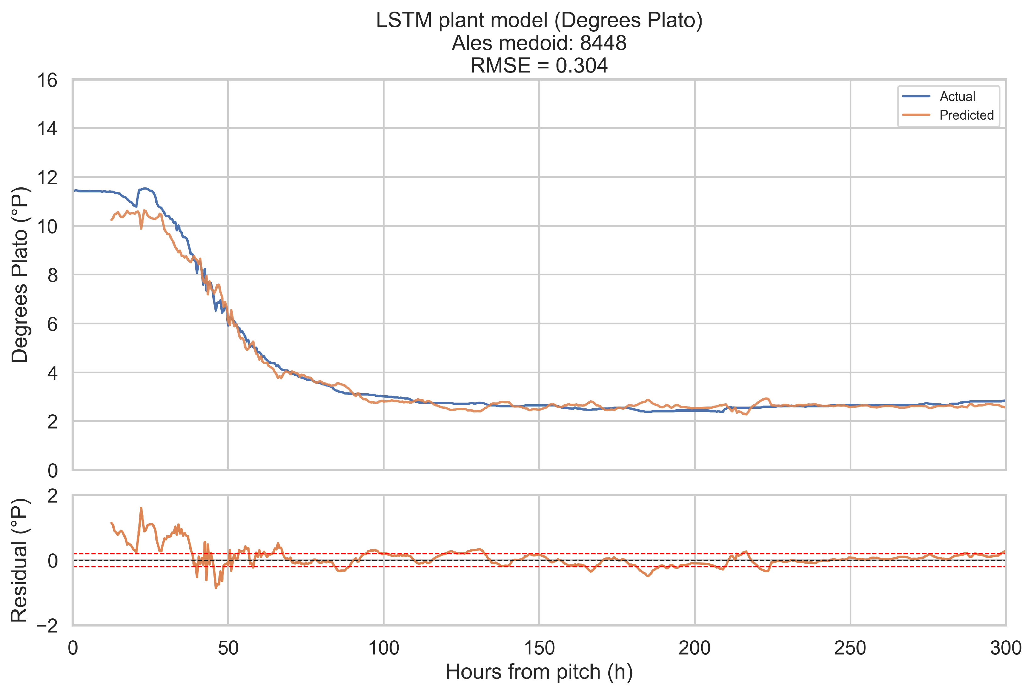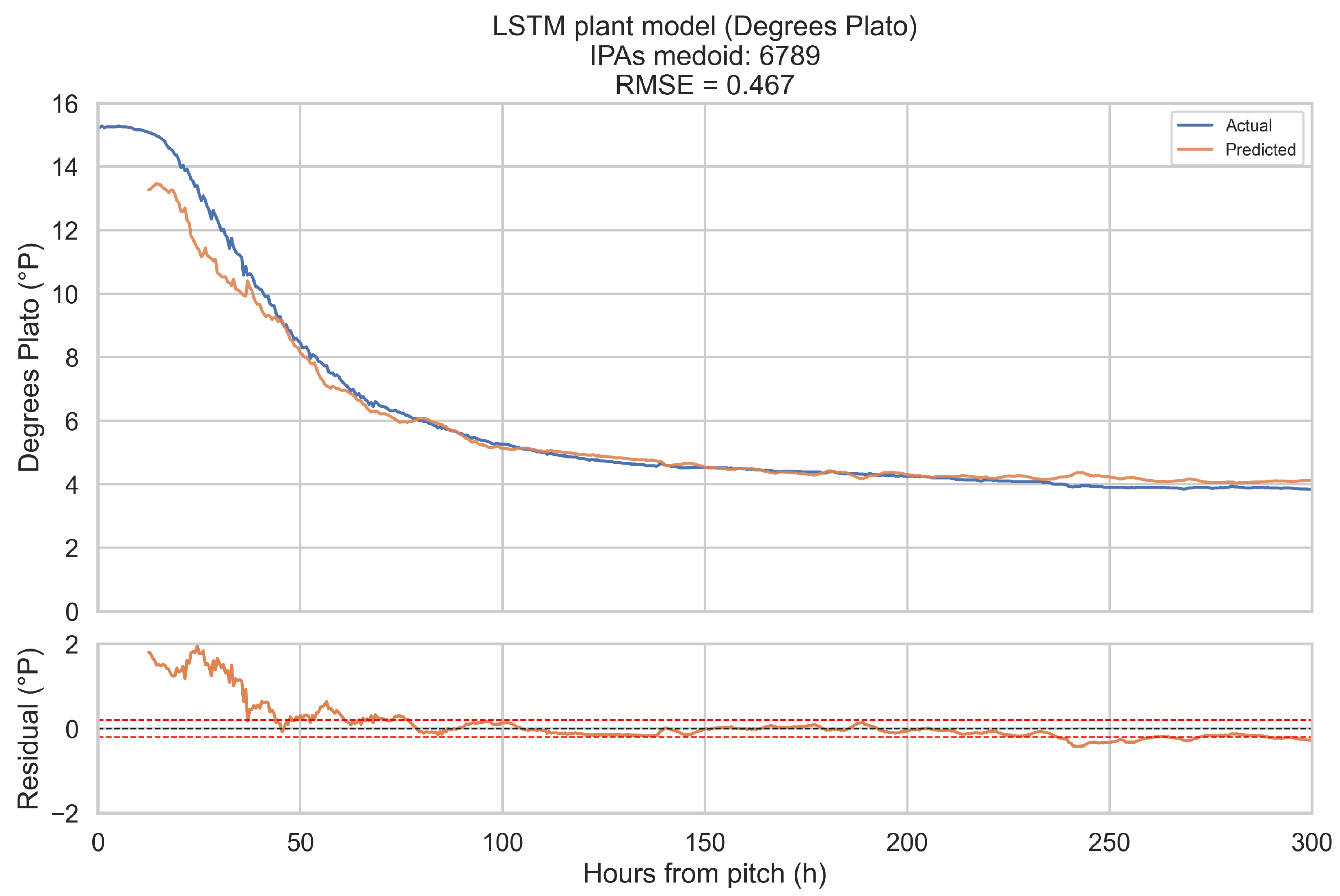 19]. The present model uses a relatively modest architecture by modern standards, with only two layers of 128 units and a 16-dimensional style embedding. Yet, the training curves and medoid results indicate that this capacity is sufficient for the process modelling challenge. In this respect, the LSTM plant model extends previous data-driven work in brewing [