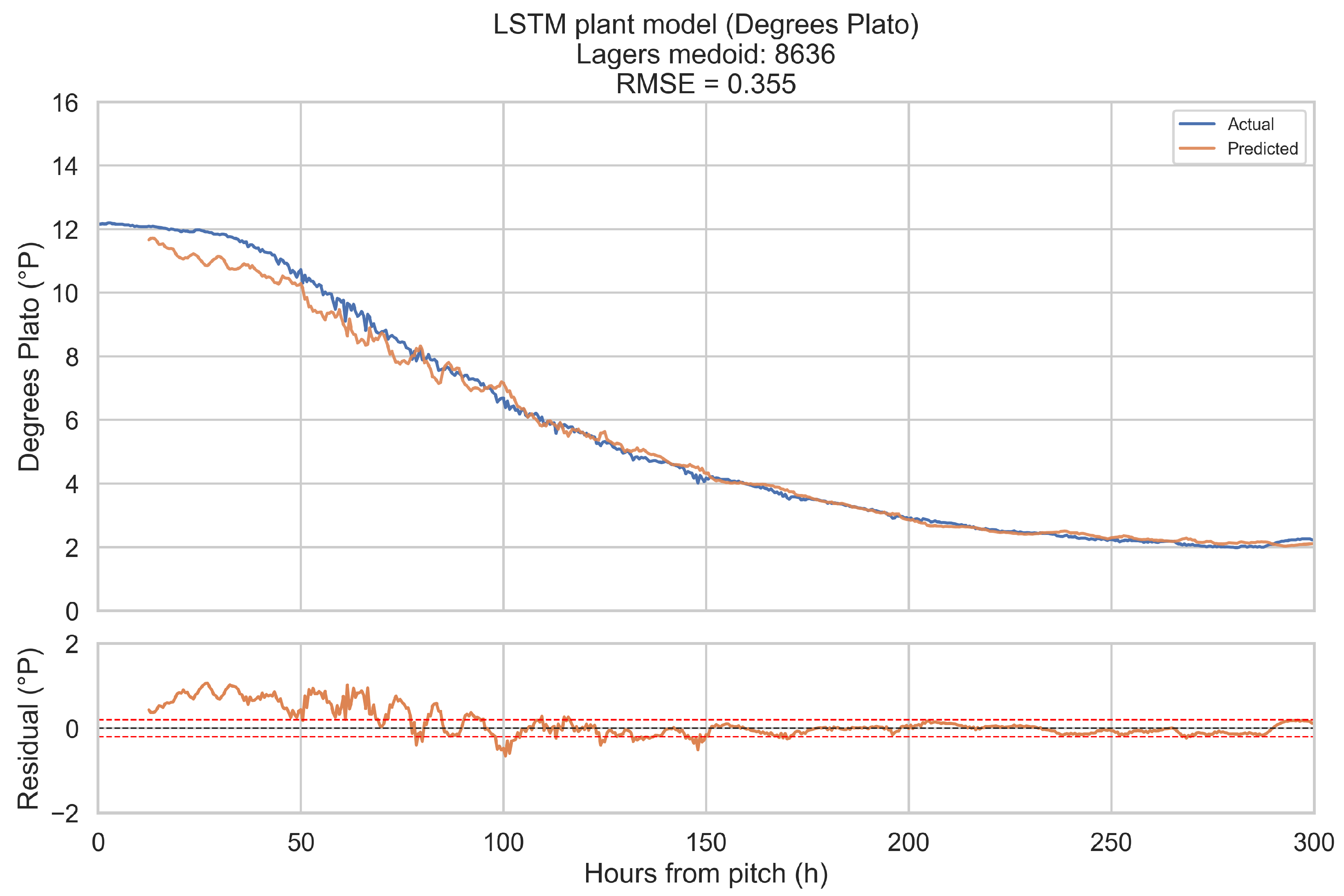 In conclusion, the LSTM-based plant model introduced in this work delivers a data-driven yet computationally efficient model of beer fermentation behaviour. It demonstrates how recurrent neural networks trained on production data can serve as practical building blocks for brewery digital twins and decision-support workflows.