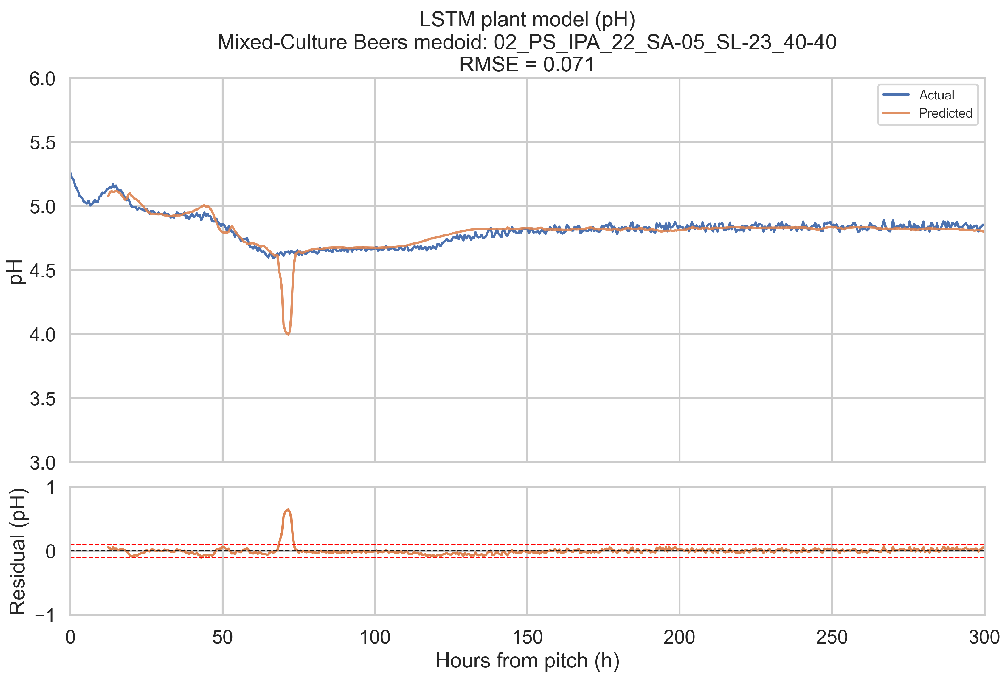 Secondly, the multi-output design, with a shared recurrent backbone and separate degrees Plato and pH output heads, allows the model to exploit relationships between attenuation and acidification. In many fermentations, pH dynamics are strongly coupled to yeast metabolism, and changes in pH can provide indirect information about the underlying state of the culture [