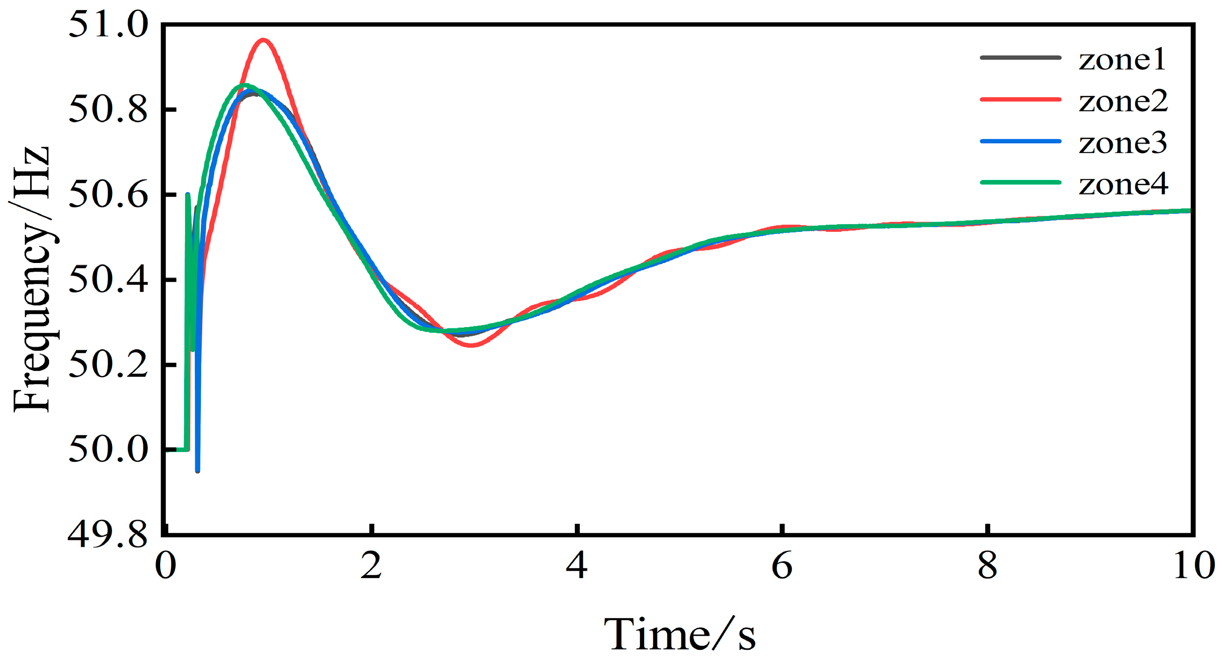 - A comprehensive regional prioritization model for high-frequency generator tripping is established by integrating four key indicators, including regional power surplus ratio, equivalent inertia time constant, frequency deviation, and RoCoF. By adopting a data-driven AHP-based weighting strategy, the proposed model effectively avoids over-tripping and under-tripping risks under high renewable energy penetration scenarios.