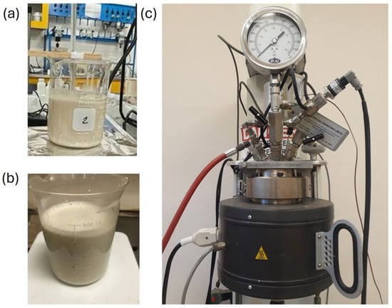 Experimental setups for the leaching tests: (a) conventional leaching, (b) hot leaching, and (c) pressure leaching/oxidation in a 1 L Parr autoclave.