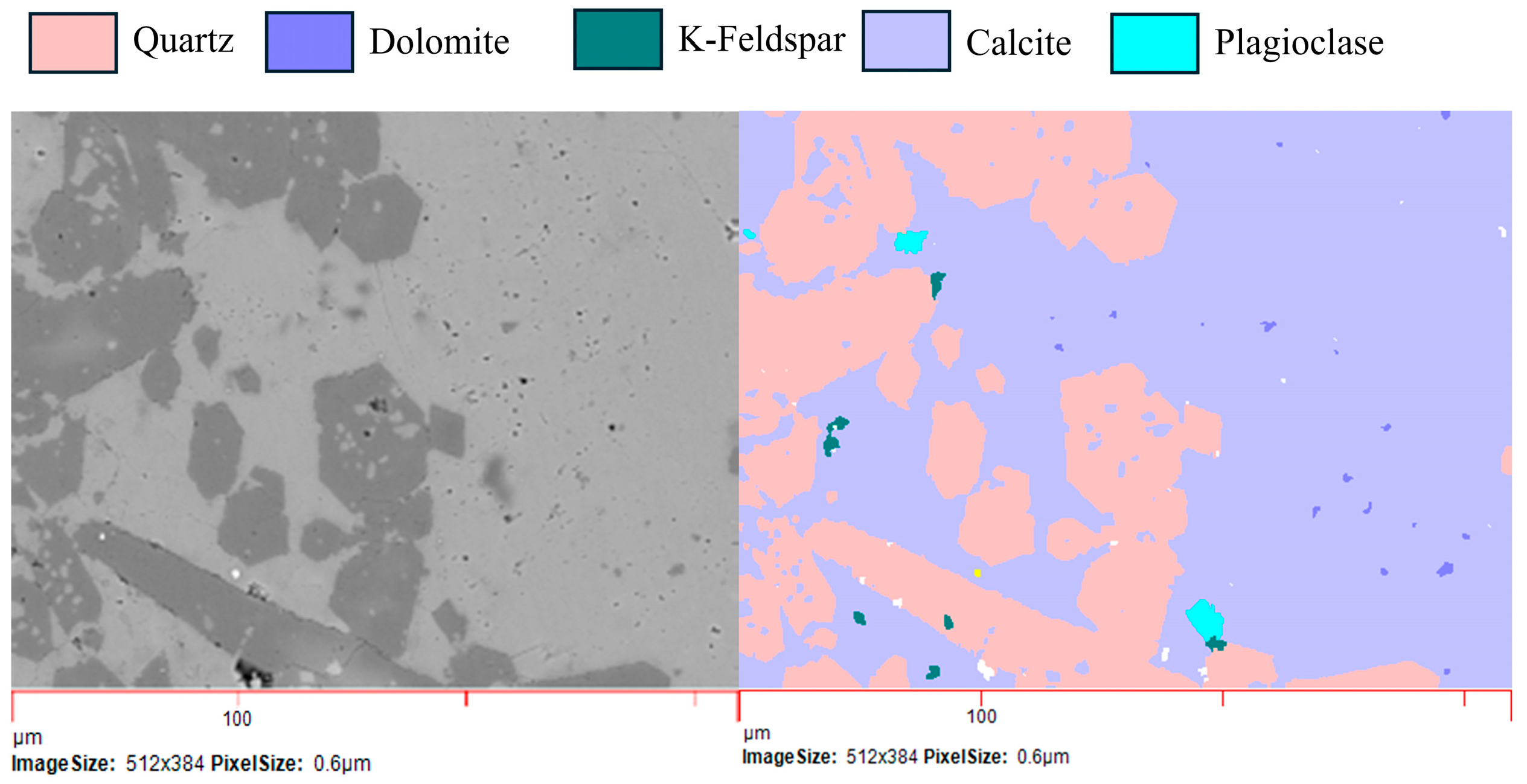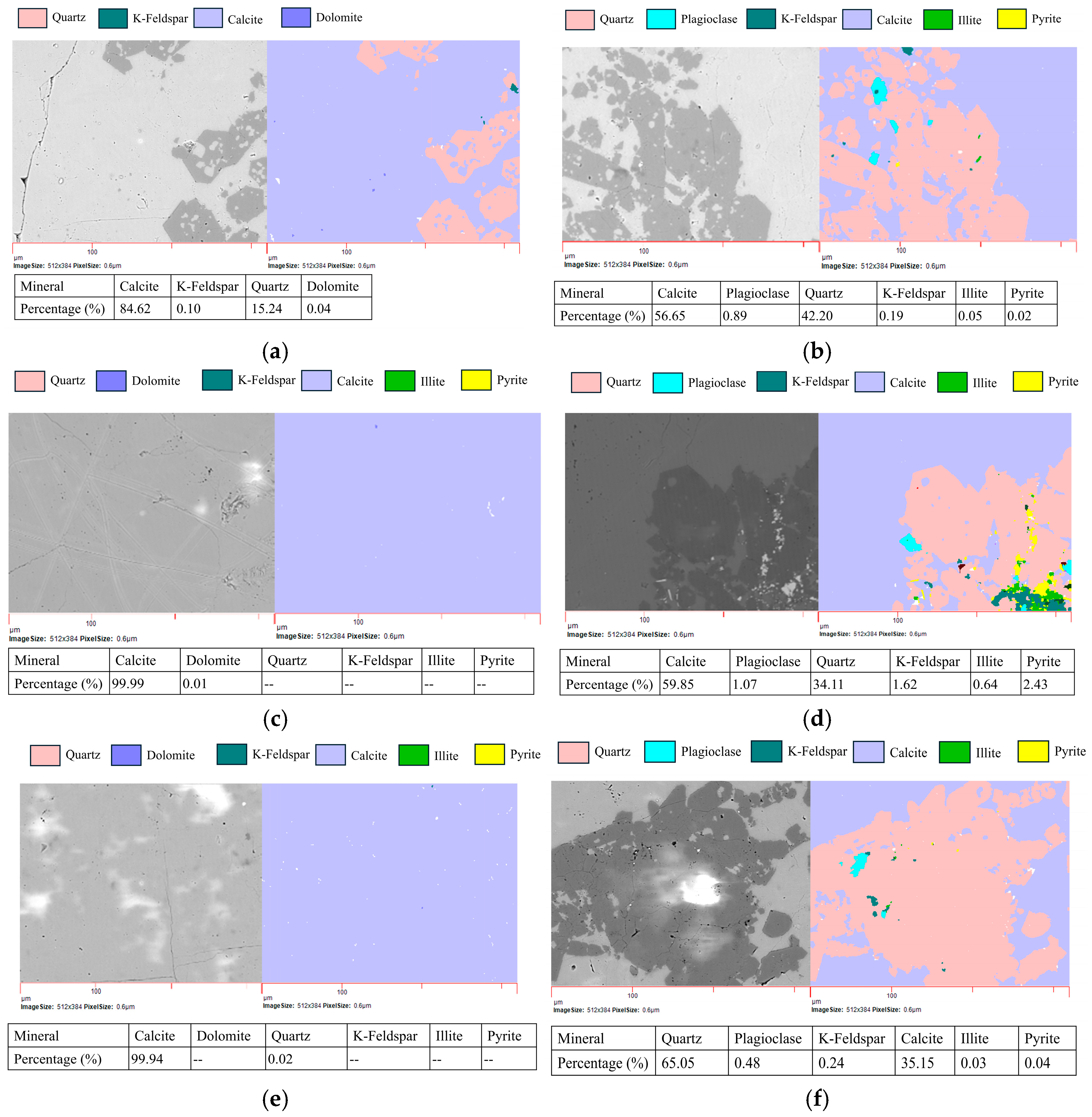 | Components | Calcite | Quartz | Dolomite | Illite | Plagioclase | K-Feldspar | Pyrite |