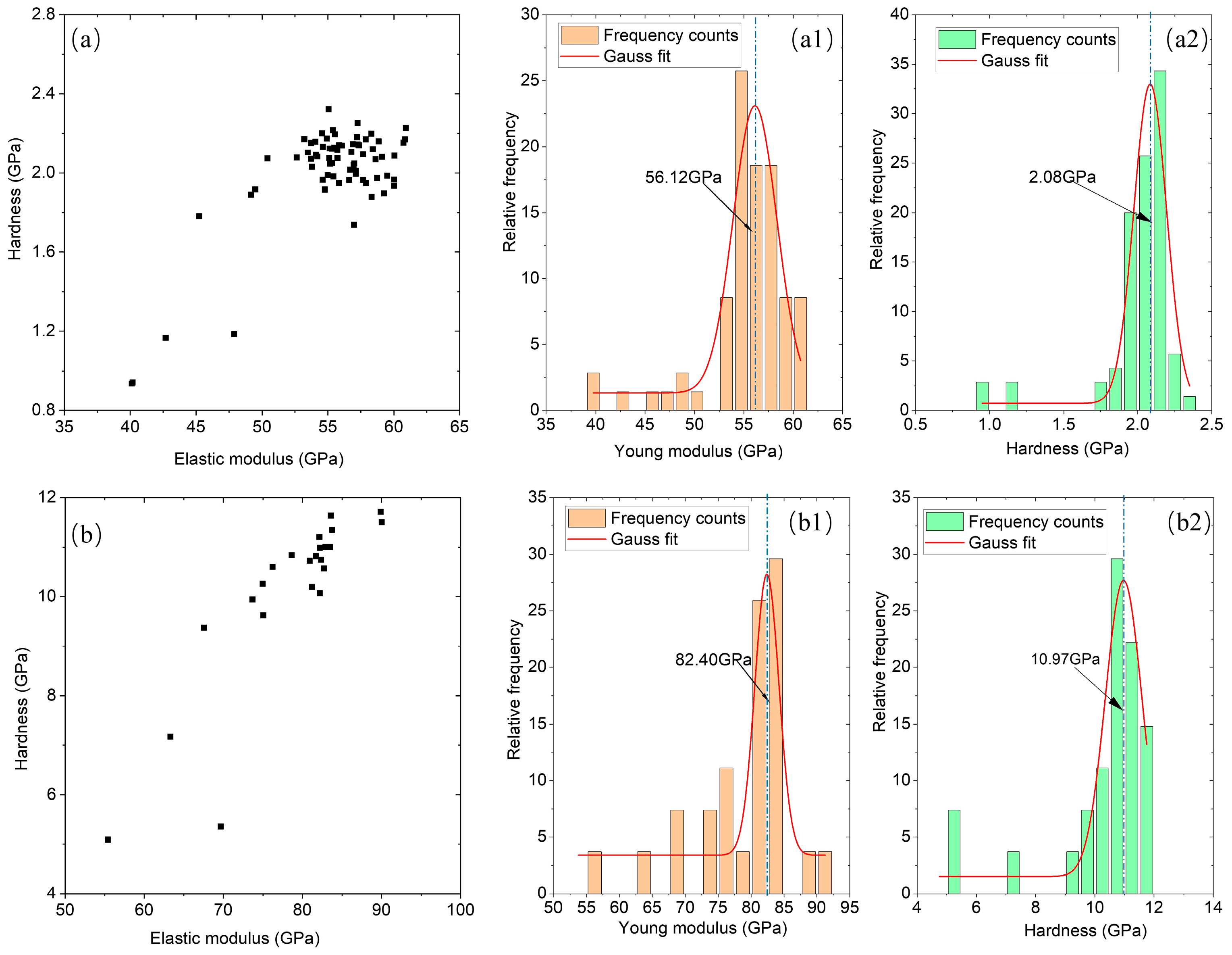 3.3. Elastic Modulus and Hardness