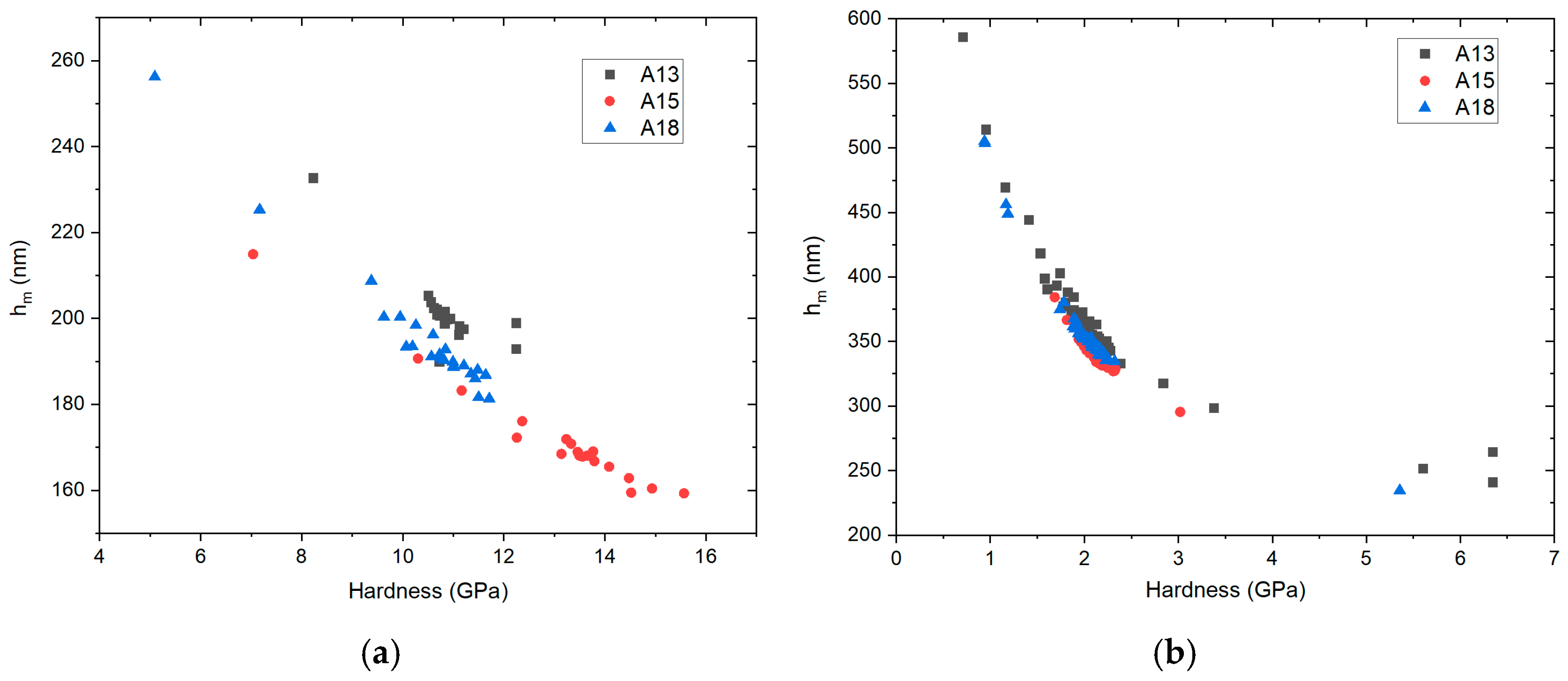 - Oliver, W.C.; Pharr, G.M. Measurement of hardness and elastic modulus by instrumented indentation: Advances in understanding and refinements to methodology. J. Mater. Res. 2004, 19, 3–20. [Google Scholar] [CrossRef]