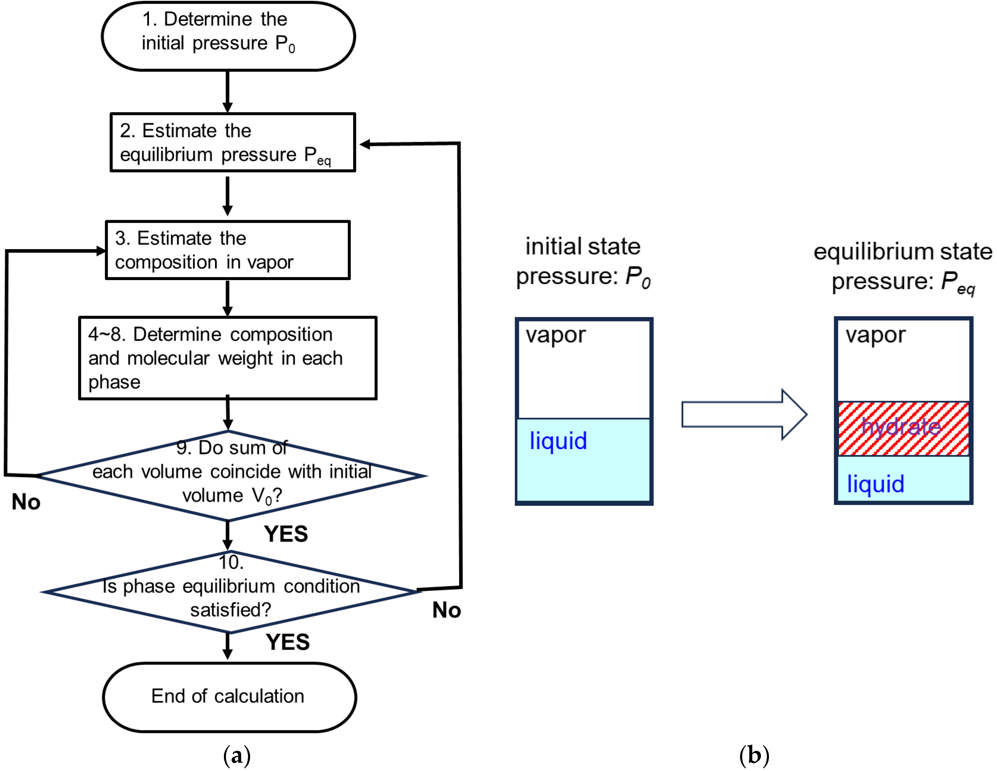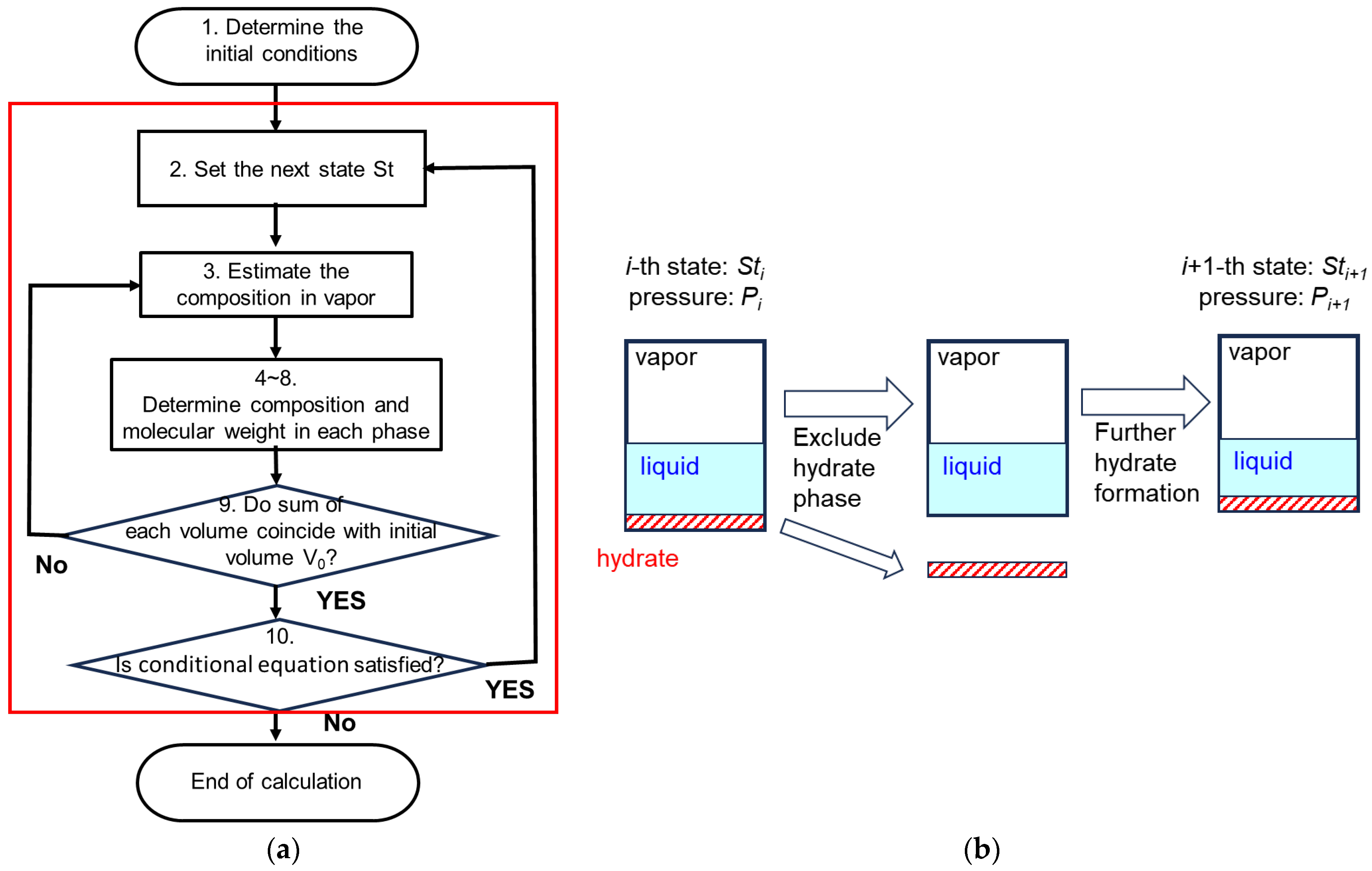 - Not satisfied: the pressure Pi set in 2 and the state at that time Sti have reached equilibrium, so we assume that hydrate formation has stopped and thus end the calculation.