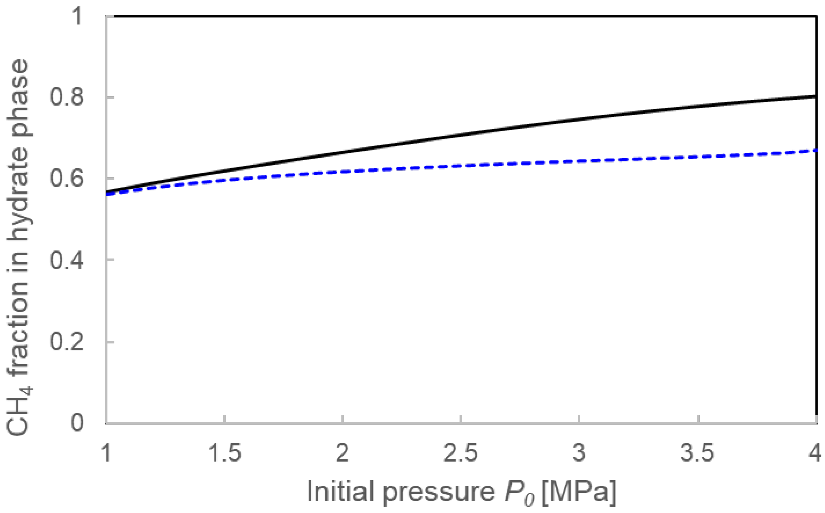 | Initial Pressure P0 [MPa] | Equilibrium Pressure Peq [MPa] | Pressure Drop ΔP [MPa] | CH4 Concentration in Hydrate Phase * |
