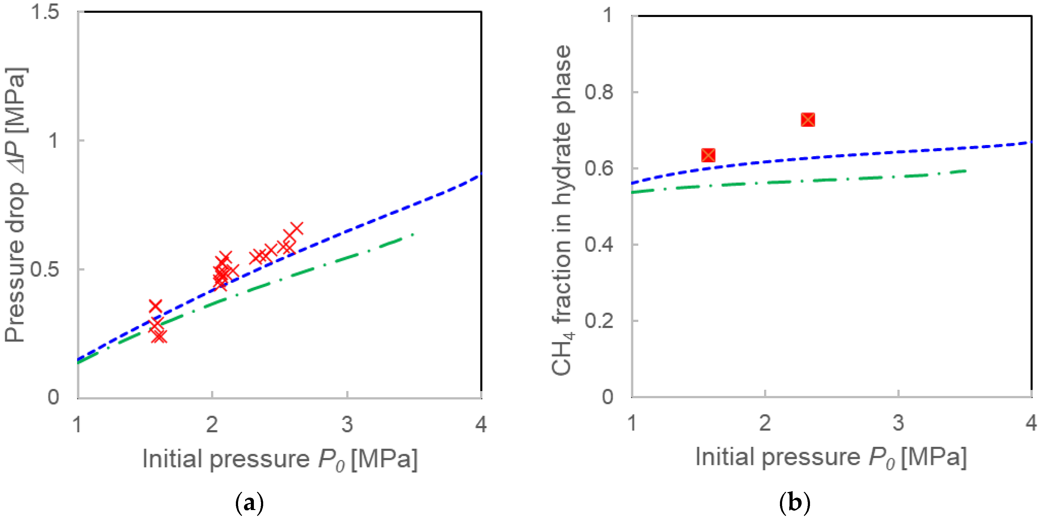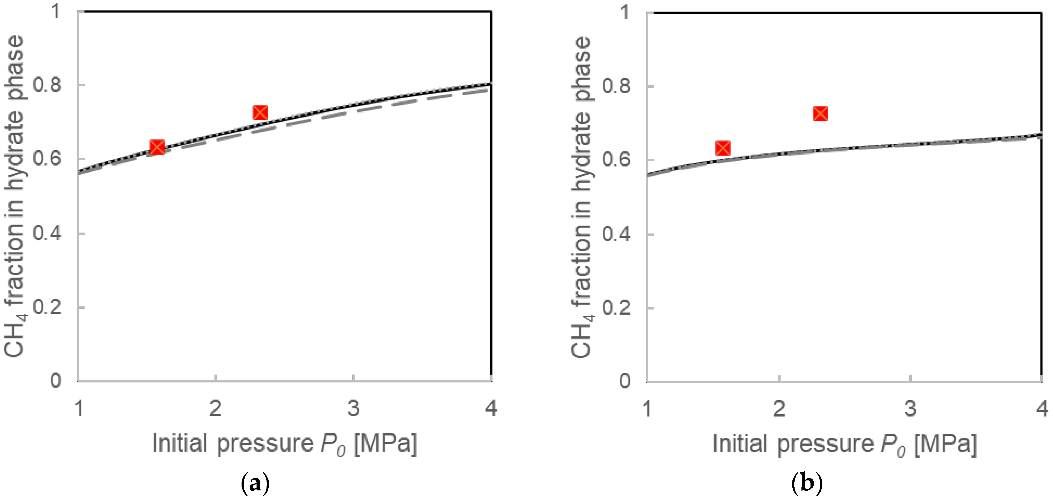 4.3. Formation Mechanisms of Mixed-Gas Hydrates Considered from a Comparison of Two Models