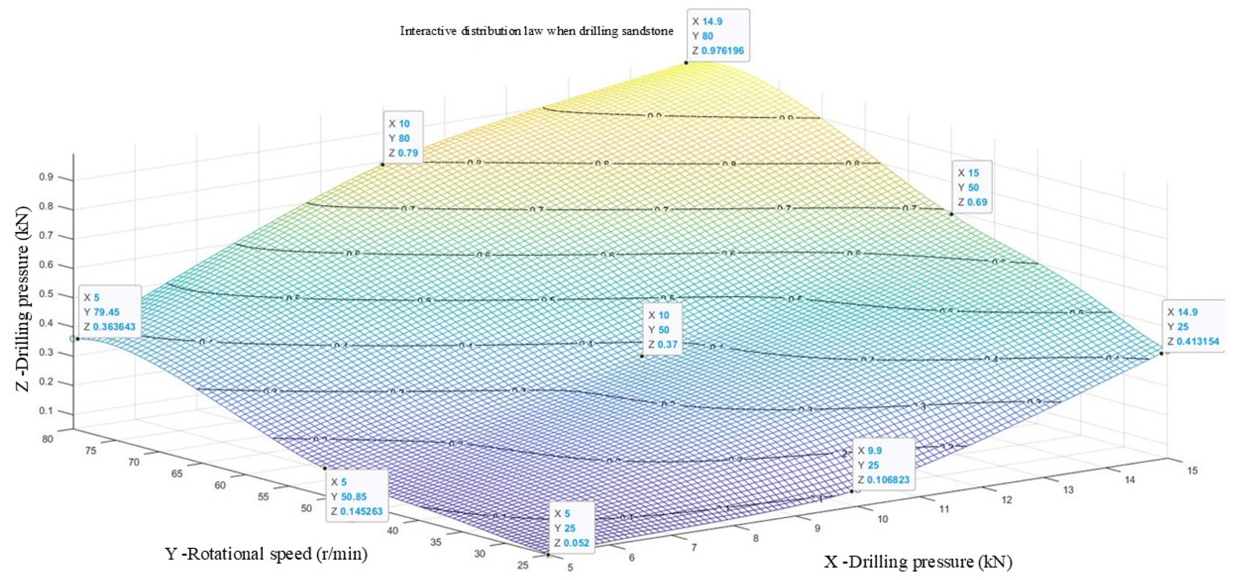 | Drilling Pressure (kN) | Rotating Speed (r/min) | Torque (N·m) | Drilling Rate (m/h) |