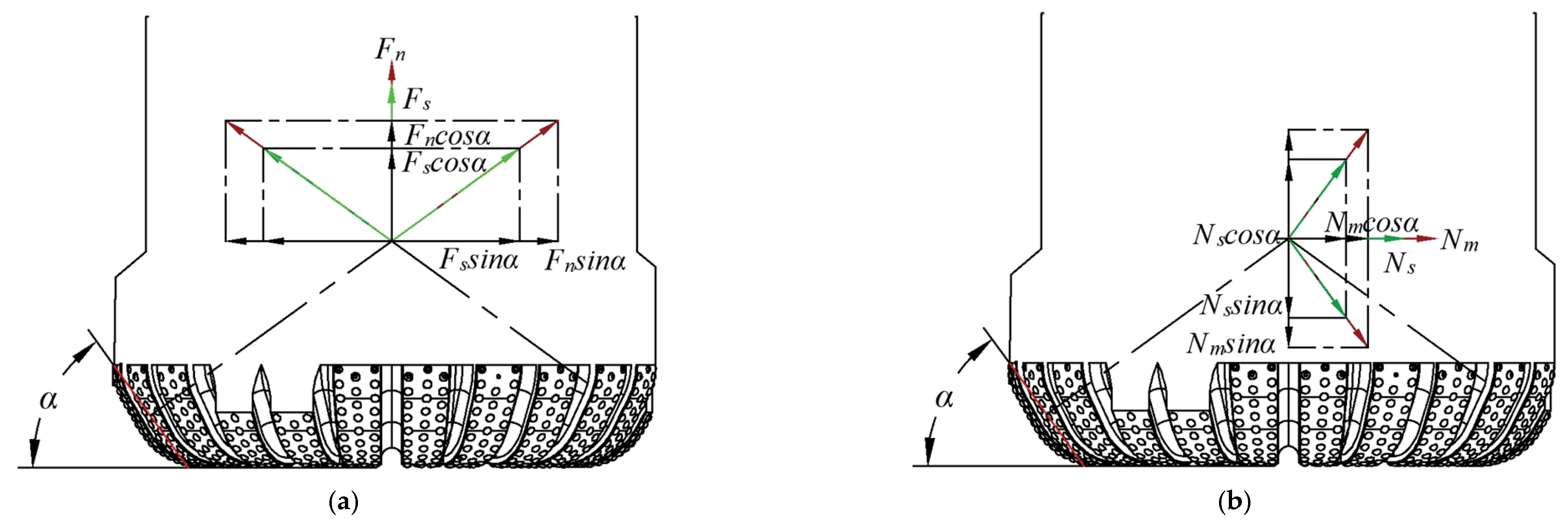 - Ruan, H.; Shen, L.; Li, C.; Ouyang, Z.; Wu, H.; Chen, Y. Development and application of a new type of sharp-tooth PDC bit for elastic-plastic dense mudstone. Explor. Eng. 2014, 41, 80–83. [Google Scholar]