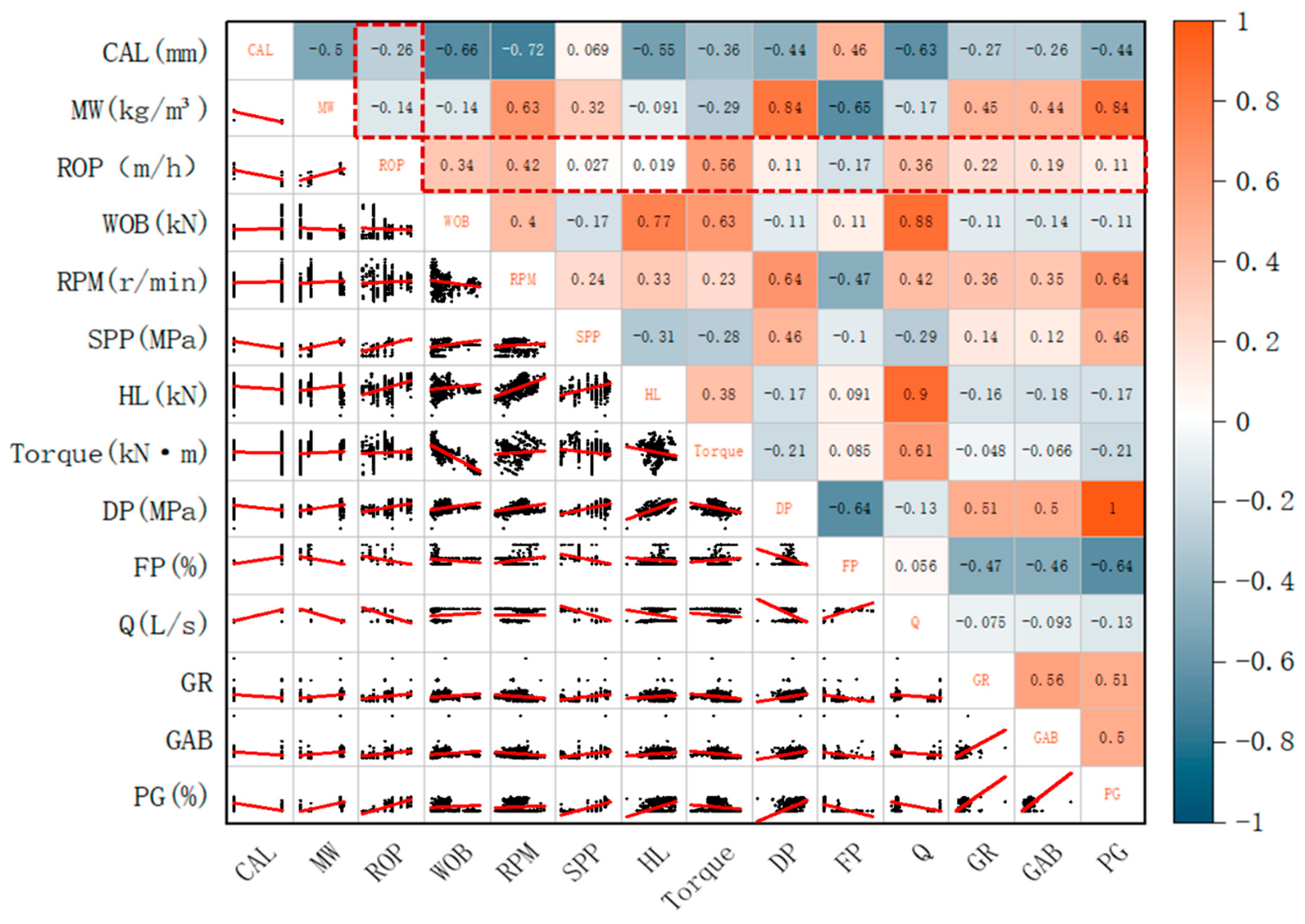 | WOB | 0.821 | Strong Correlation | Strong nonlinear correlation |