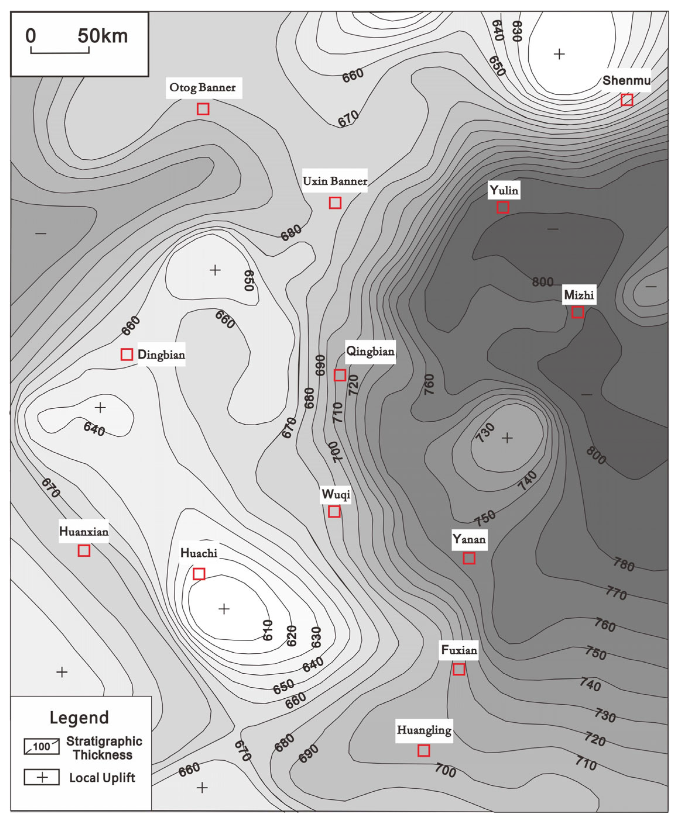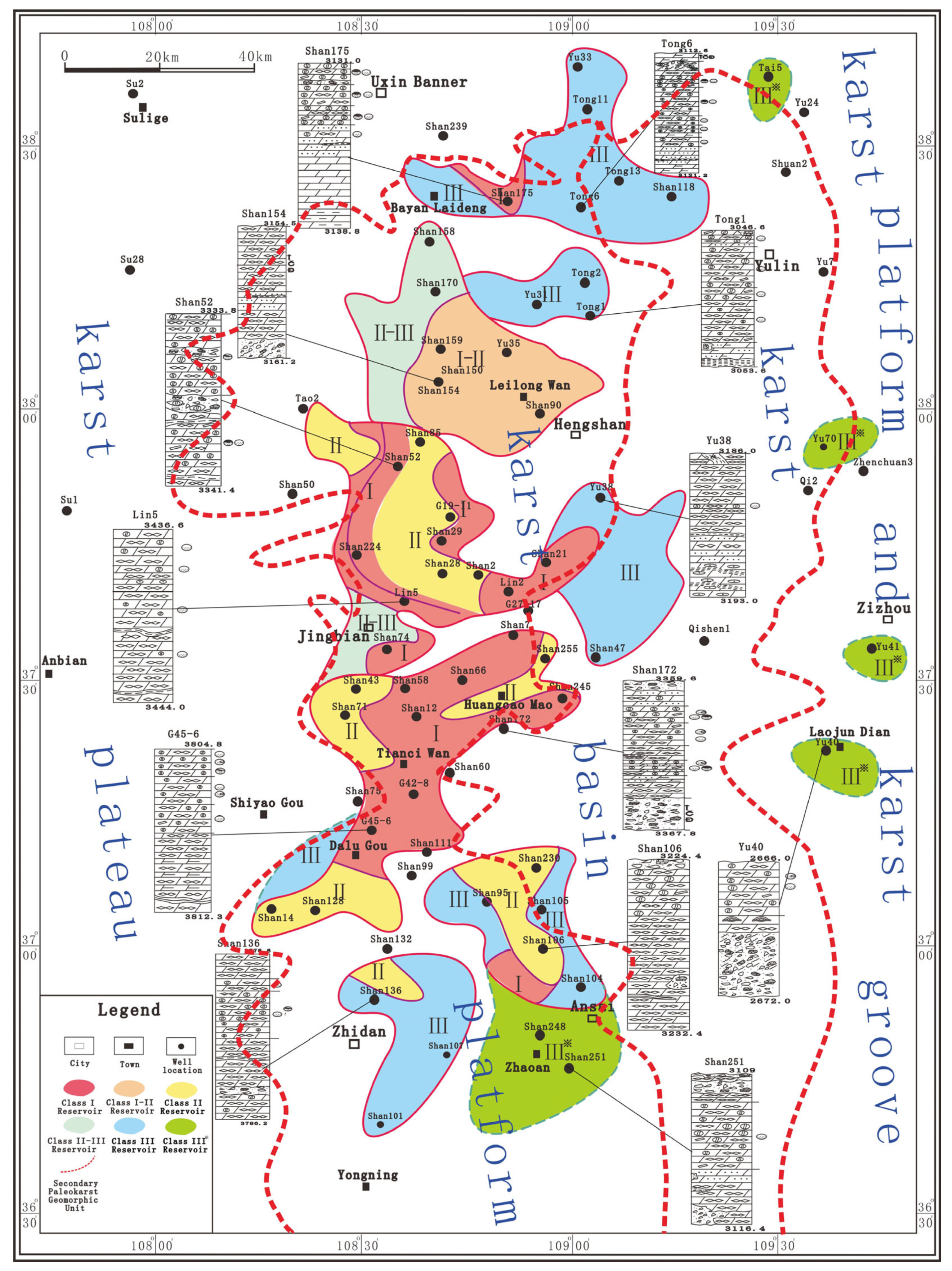 - Li, Z.H.; Hu, J.M. Tectonic evolution and paleokarst reservoir distribution in the Ordos Basin. Oil Gas Geol. 2010, 31, 640–647+655. [Google Scholar]