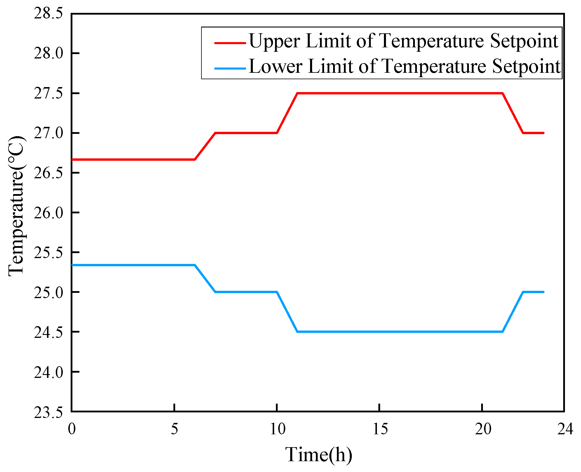 By considering the user’s willingness factors, the temperature constraint range originally determined by the user comfort model can dynamically change. The temperature variation formula is as follows: