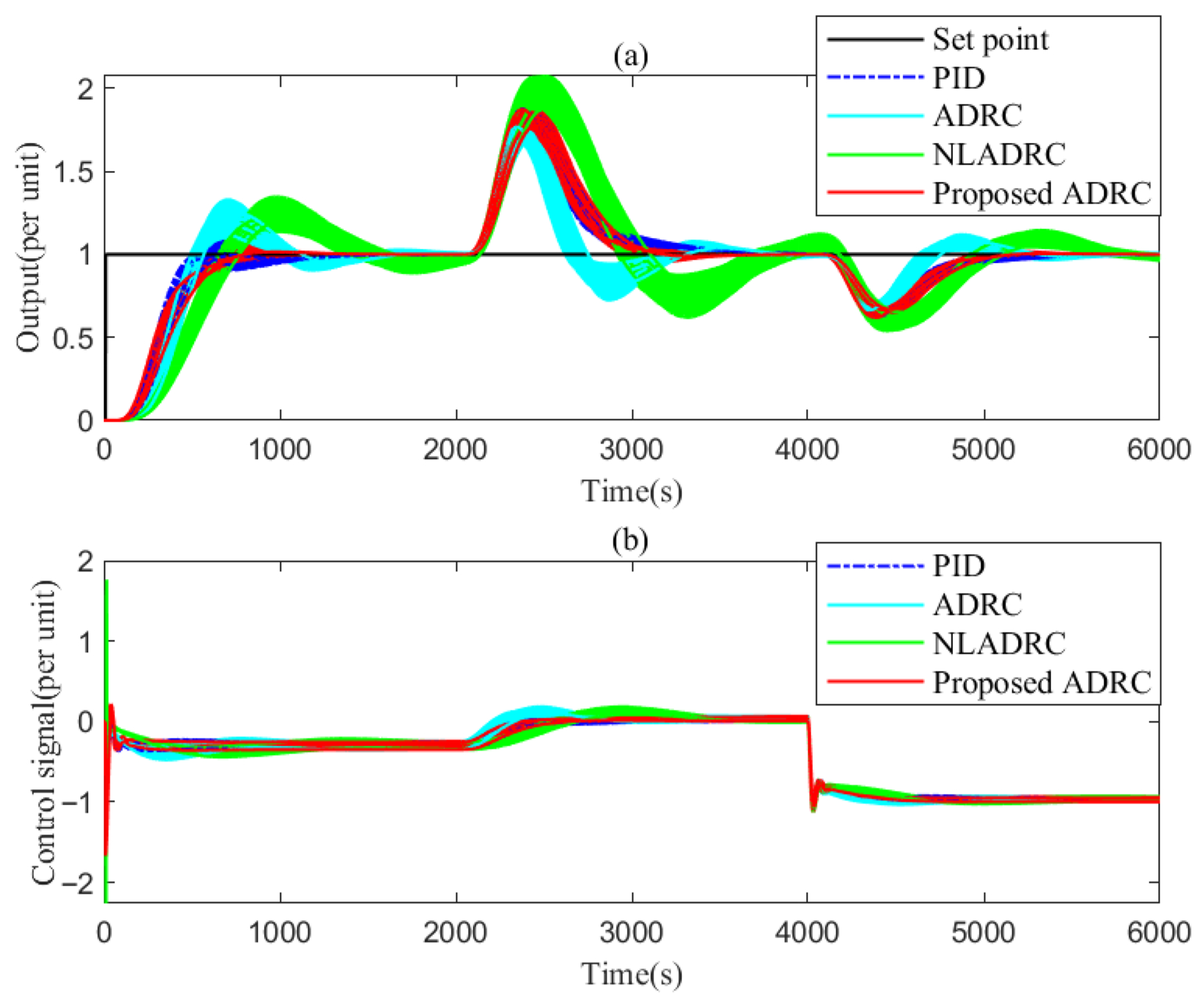 - Wu, Z.L.; Li, D.H.; Liu, Y.H.; Chen, Y.Q. Performance analysis of improved ADRCs for a class of high-order processes with verification on main steam pressure control. IEEE Trans. Ind. Electron. 2023, 70, 6180–6190. [Google Scholar] [CrossRef]