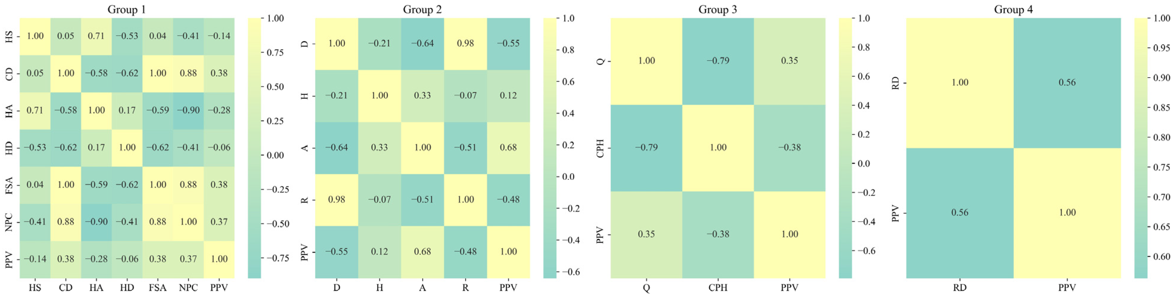 29] analyzed the correlations among features before developing a prediction model, but ultimately chose to use the complete feature set to predict peak vibration speeds in open-pit coal mines due to weak correlations. Hajihassani et al. [
