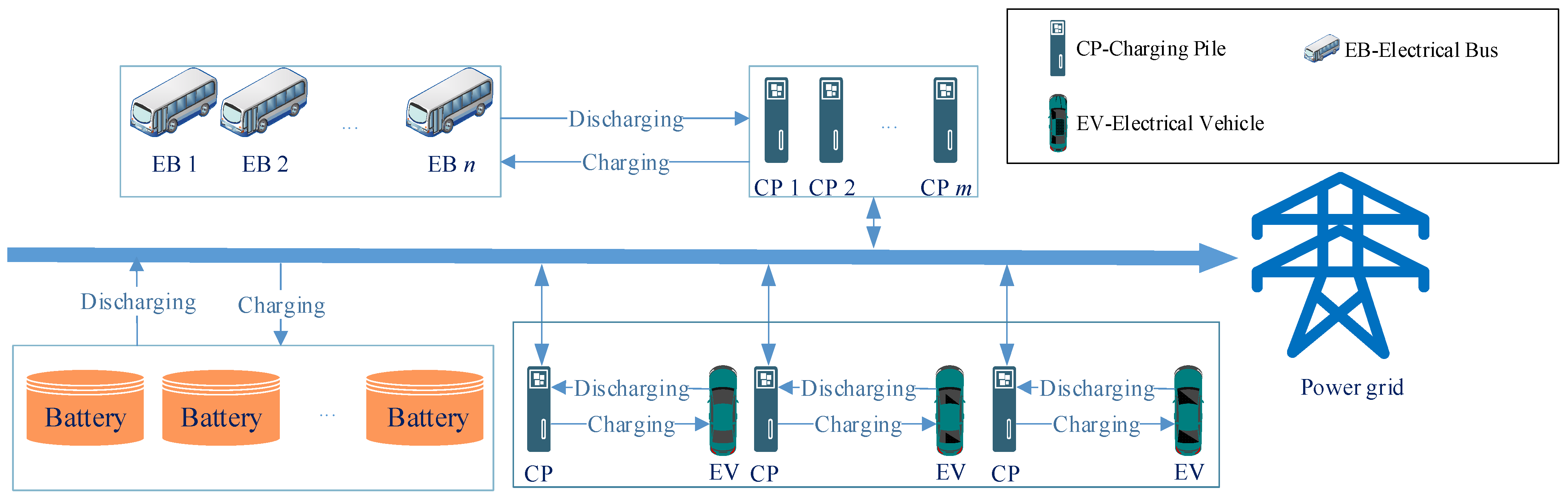 | Type | EVs | EBs | BESS | Piles |