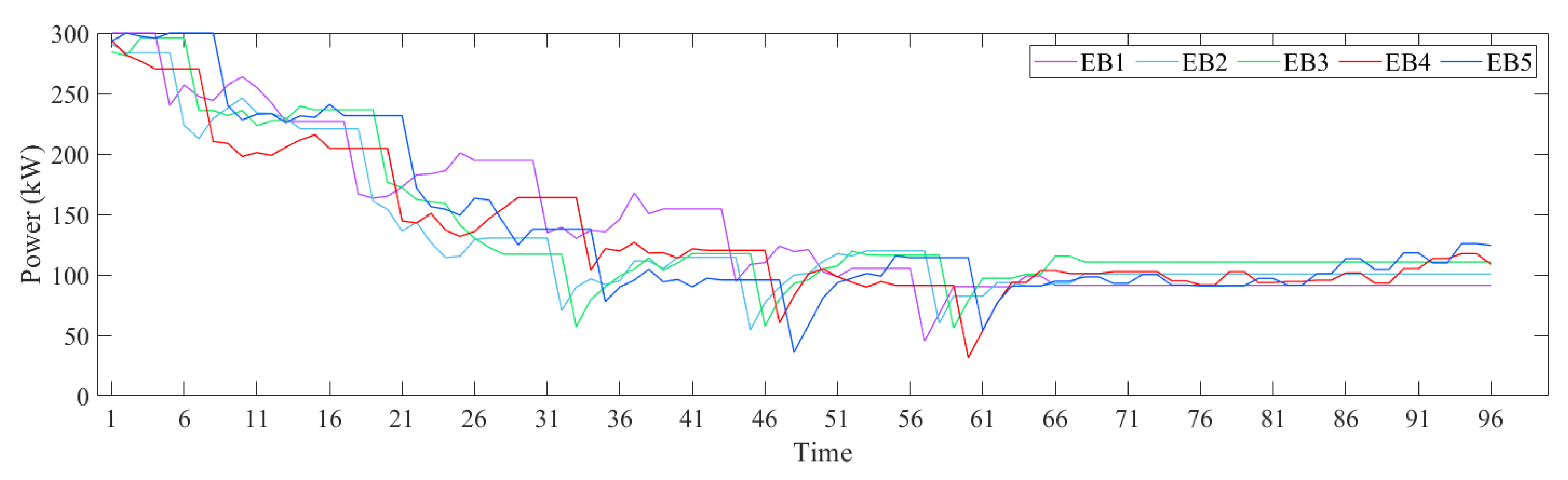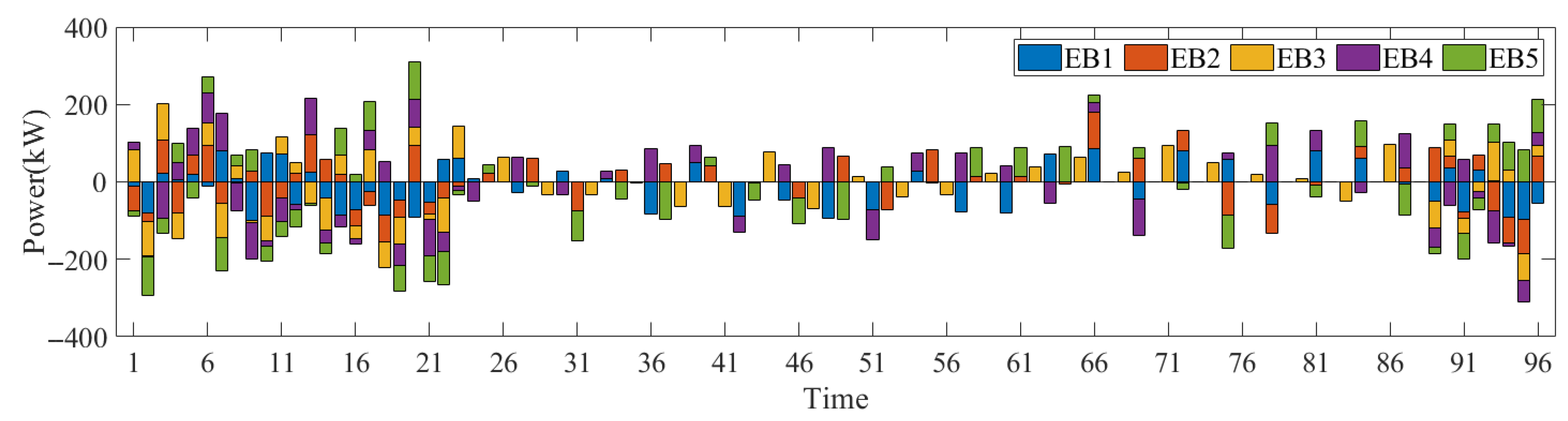 | PEB | charging and discharging power of EB (kW) (in this paper the negative value indicates the EB is in discharging mode) | ||