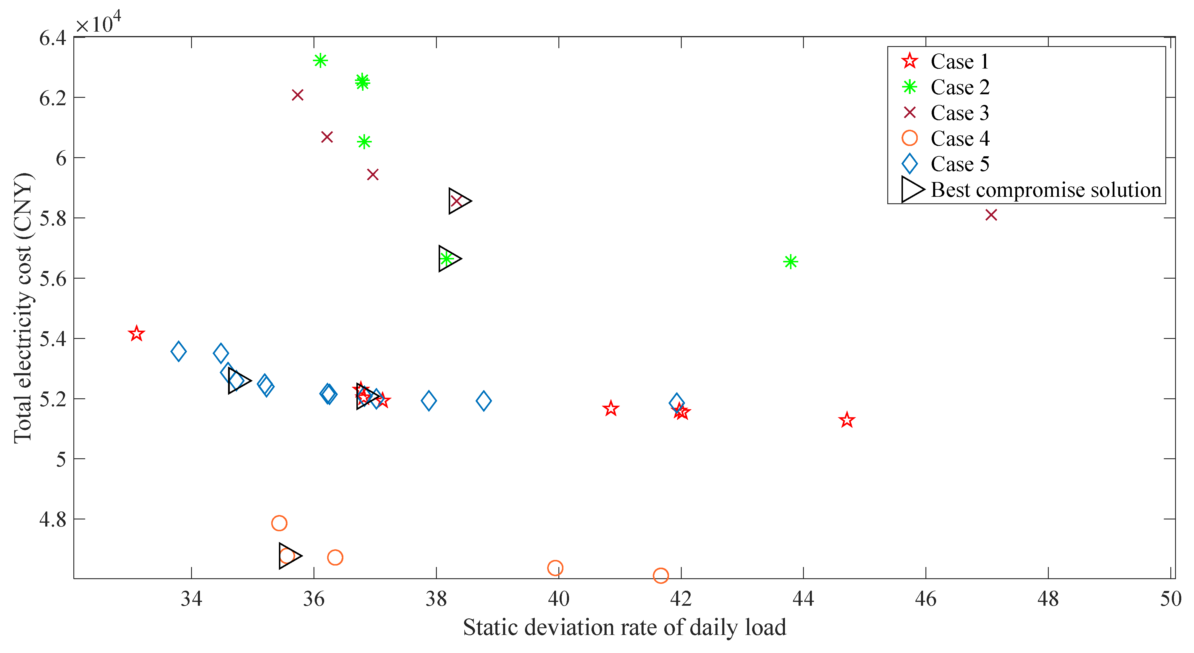 | Total Electricity Cost (104 CNY) | Static Deviation Rate of Daily Load | ||||