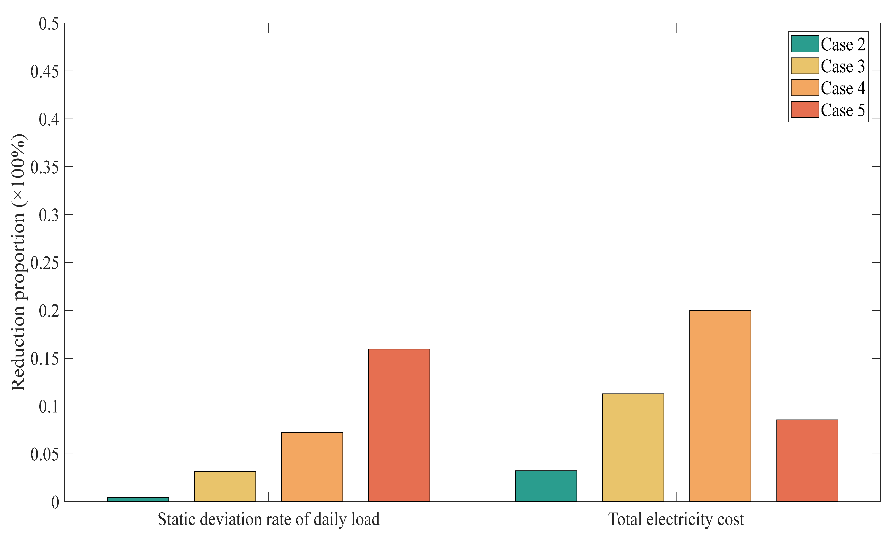 | Static Deviation Rate of Daily Load | Total Electricity Cost (104 CNY) | Percentage Reductions in Static Deviation Rate | Percentage Reductions in Cost Savings | ||