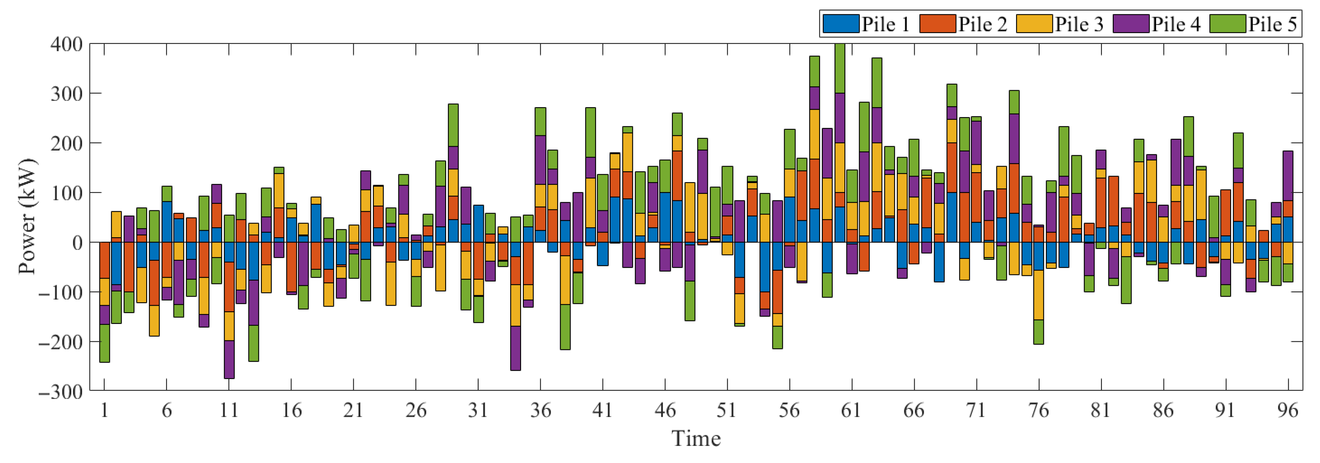 - The introduced handling method for EBs-charging piles matching problem not only ensures operational feasibility under resource constraints but also strategically utilizes the flexible charging/discharging capacity of matched EBs to support grid stability and renewable integration.